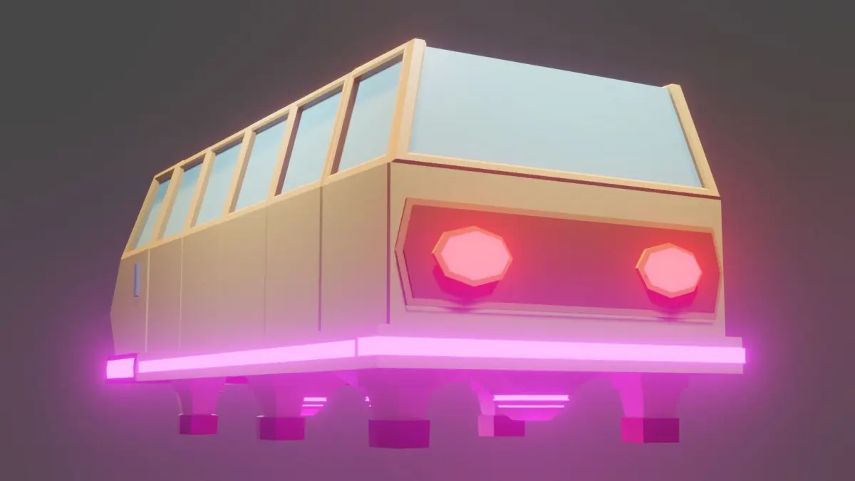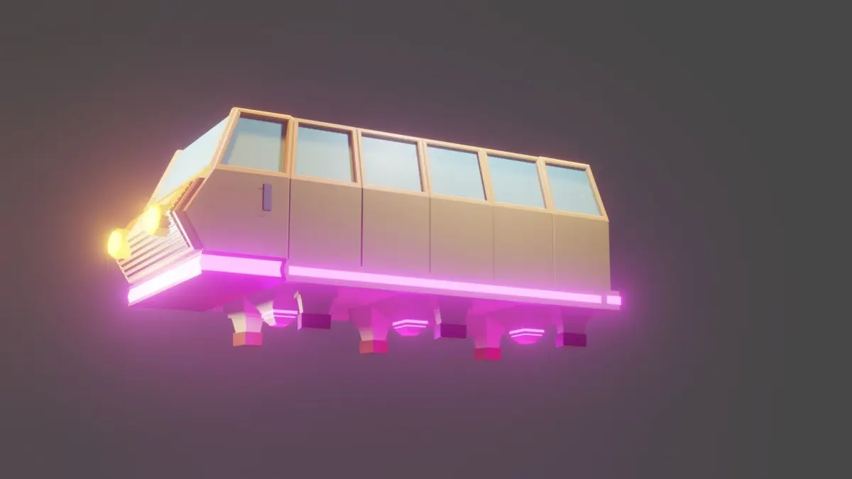 free flying future bus this game ready simple lowpoly flying bus very easy to use in any game engine indie gamers can animate all file attaced blender native file render eevee