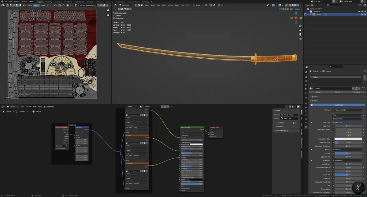 High-Quality Low-Poly Black Katana FREE TO USE CC0One Texture Set with 4K Textures All Included with Katana Mesh. 4184 Triangles So you can easily use it in a mobile game.