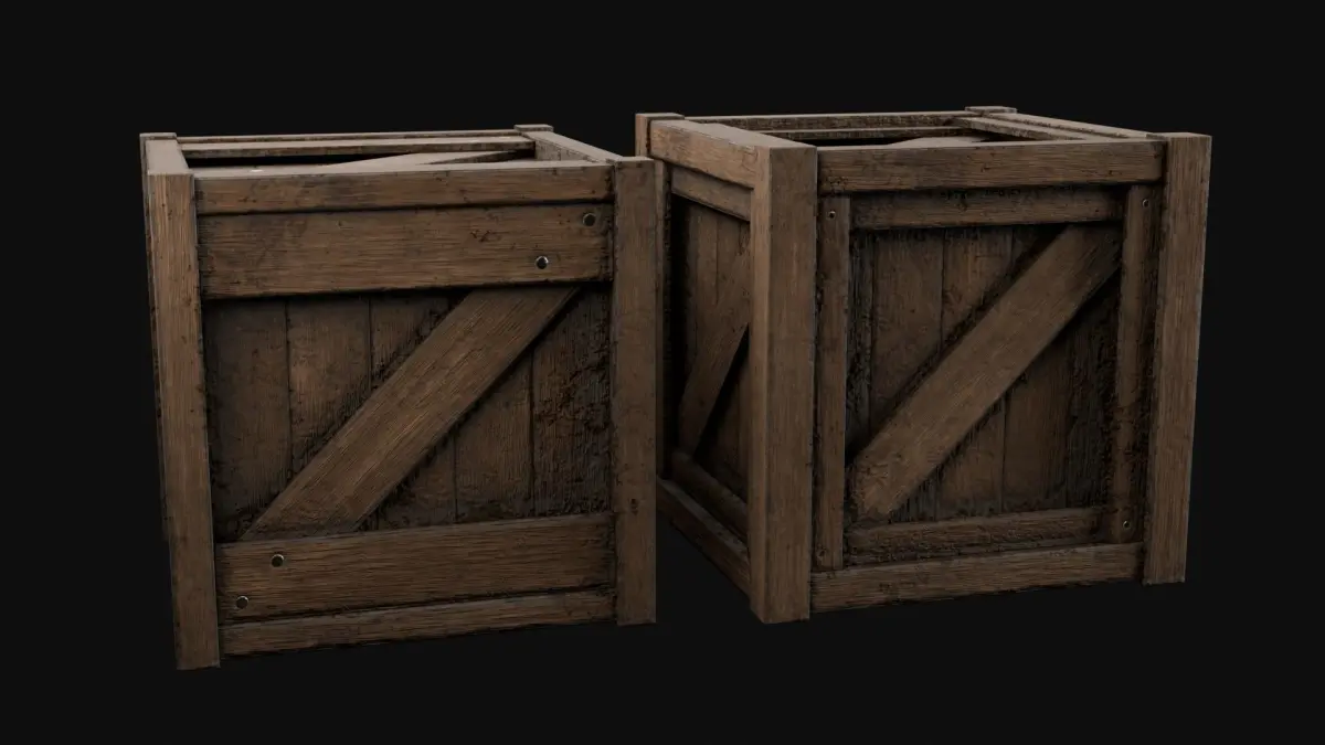 You get two crates with this, about the same poly count.Overview: Model made in Blender, textures made in Substance Designer and Substance Painter. Rendered in Blender using EEVEE and Cycles. The textures are packed into the .glb file for seamless integration into your scenes.