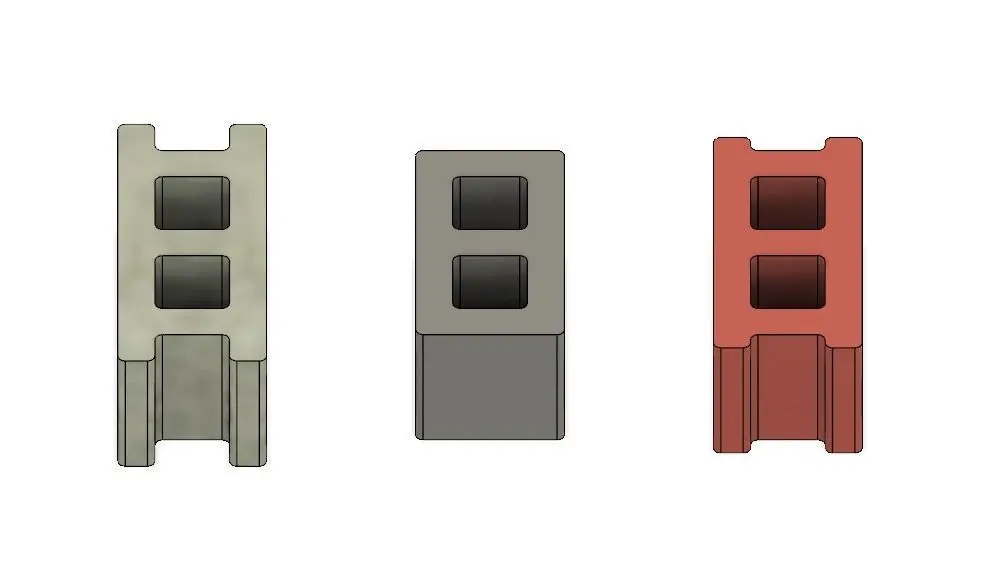 These blocks come in three slightly different shapes and sizes. Technically, the styles are called double corner and stretcher. These mini cinder blocks can be scaled up and down pretty reliably.