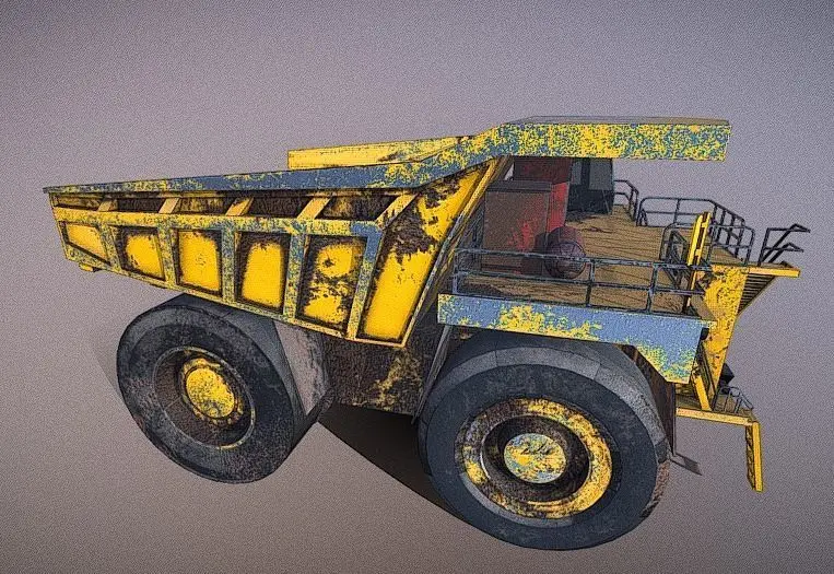 Realistic old and rusty mine truck. Enjoy