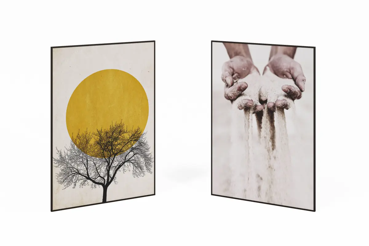 Pictures on the wall that can be used in various design projects. Such pictures are suitable for rooms with light-colored furniture, such as a living room with white-colored furniture.