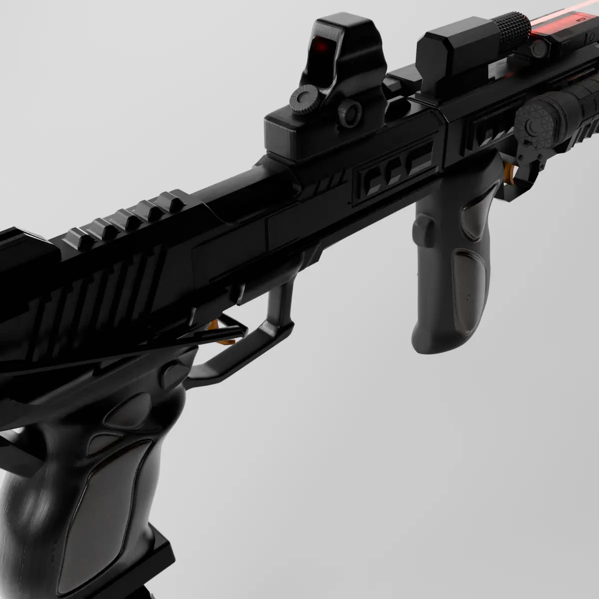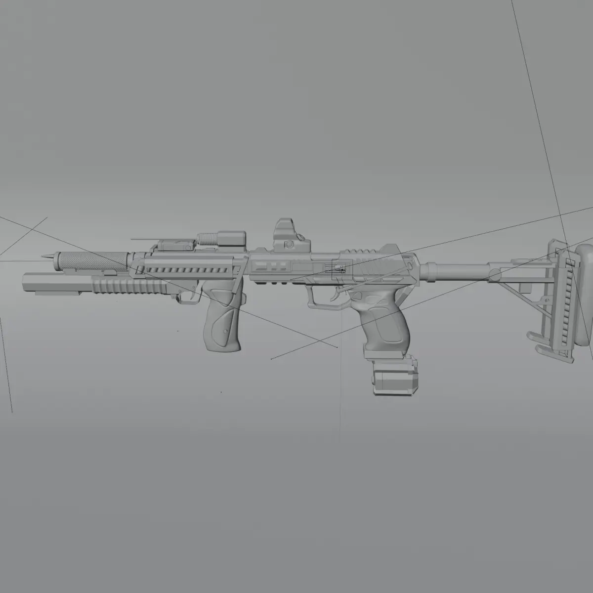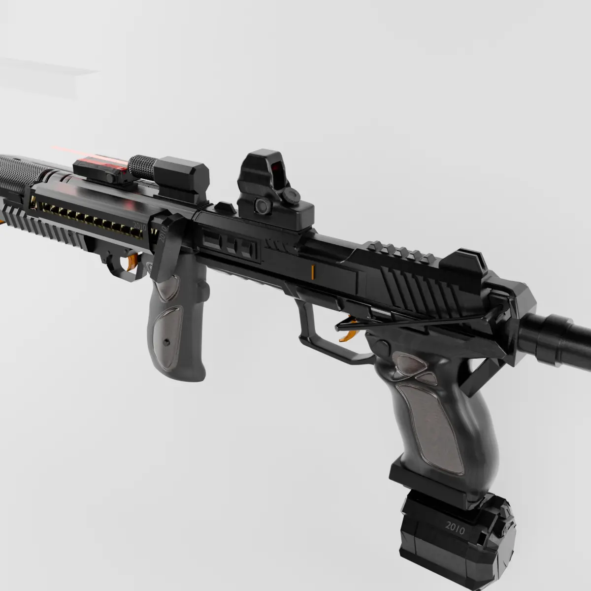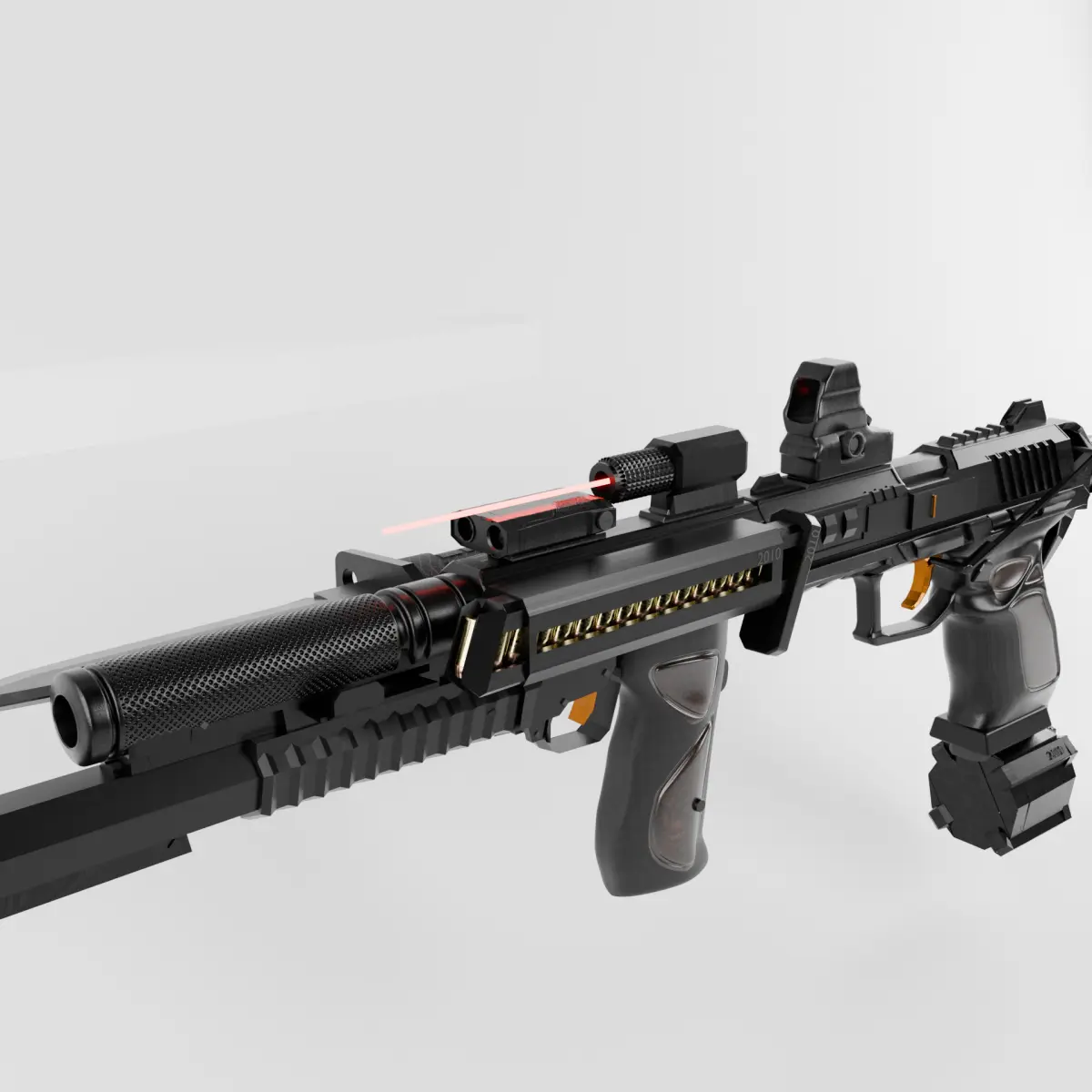 - modifications: drum magazine, 3x extra magazine, extended barrel silencer, grenade launcher, bayonette, red dot sight, laser sight, laser rangefinder, adjustable stock, front handle grip.