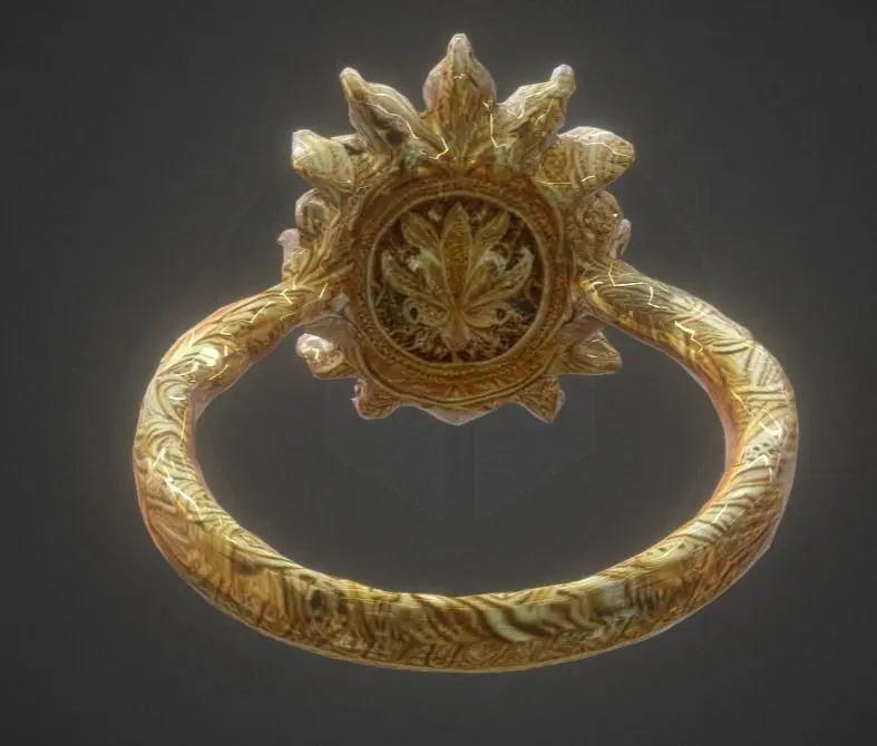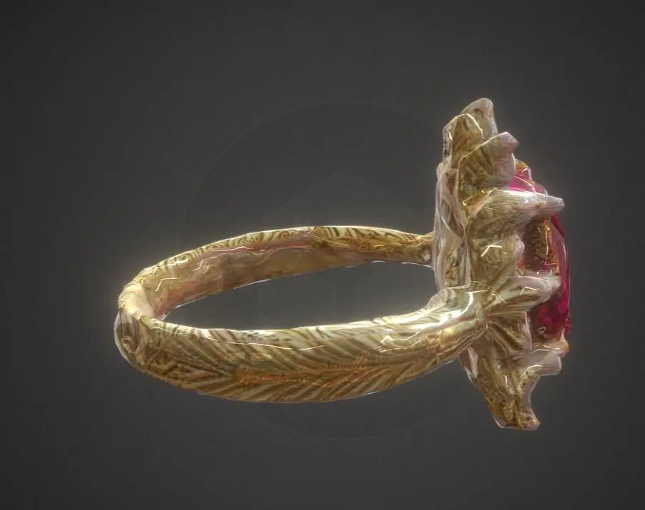 An exquisite piece of jewelry that brings a touch of luxury and elegance to any virtual environment. It features a vibrant ruby surrounded by sparkling diamonds, set in a finely detailed band. Ideal for character and avatar accessories in games.