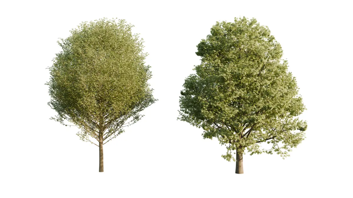 One of the standout features of this model is its dense canopy. The leaves are positioned in a layered, volumetric way to create a lush and full appearance. Light interacts with the leaves naturally, casting soft shadows and allowing for believable translucency in ray-traced environments. This makes the tree perfect for outdoor daylight scenes, forests, parks, gardens, or even fantasy landscapes. The model can also be easily customized with seasonal changes—by swapping textures or adjusting the leaf density, it can be transformed into a spring, autumn, or winter tree.