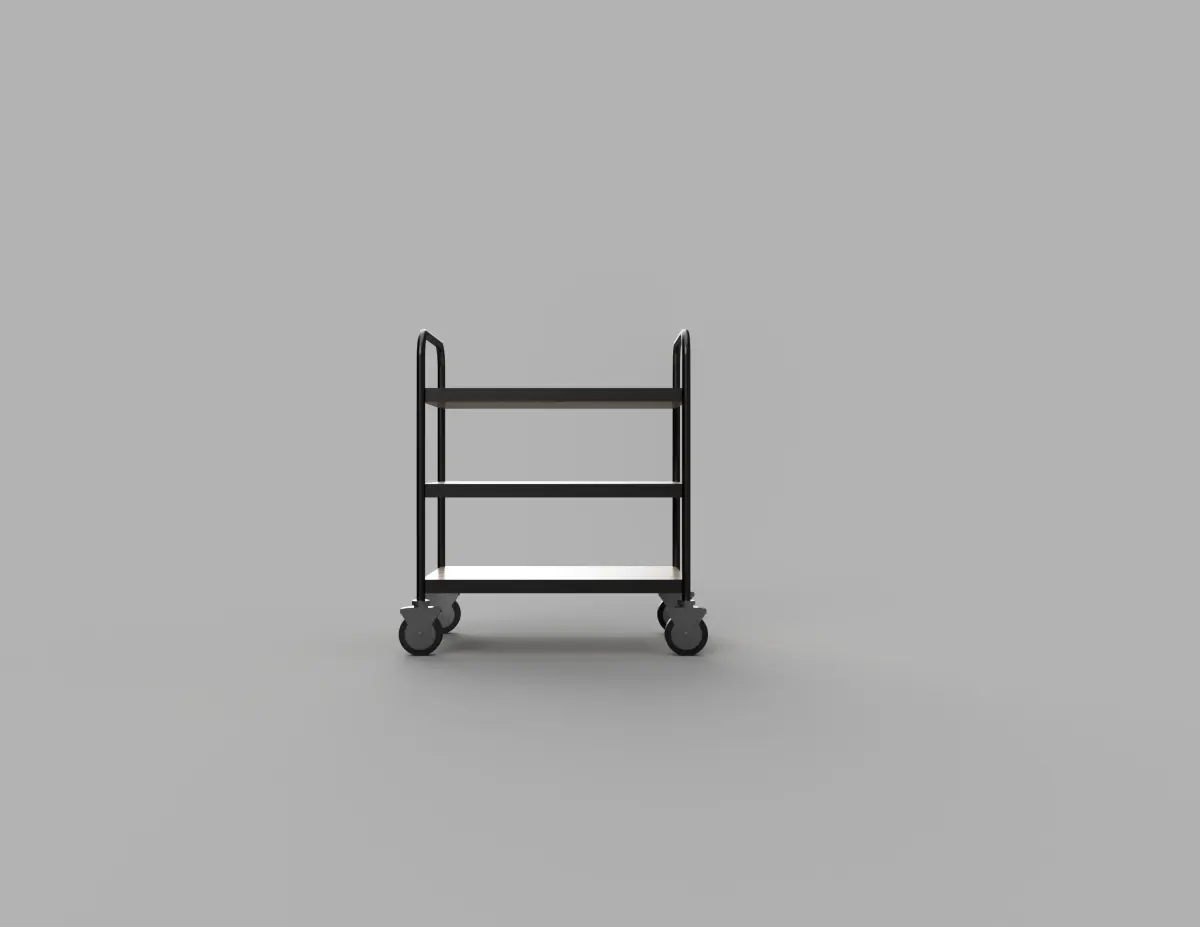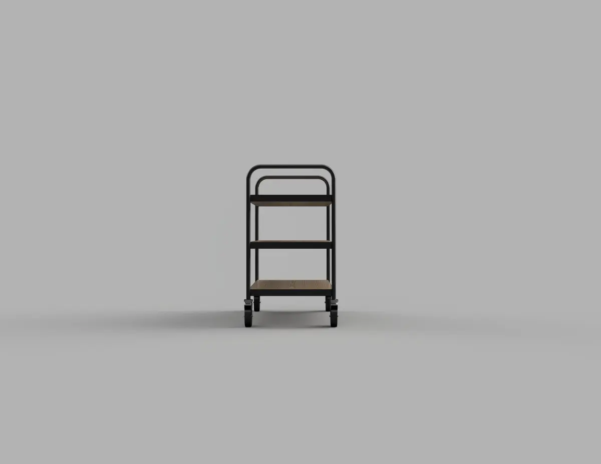 3D model of a stainless steel trolley, ideal for household or commercial kitchens.