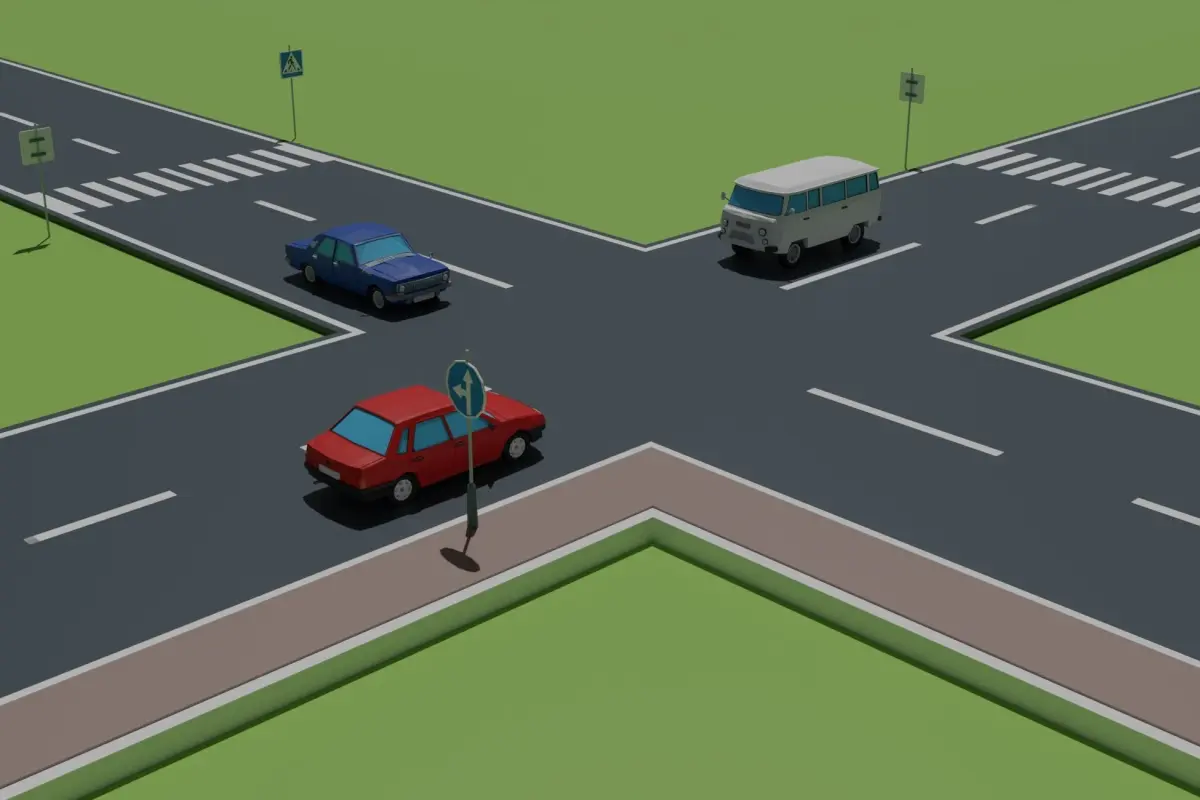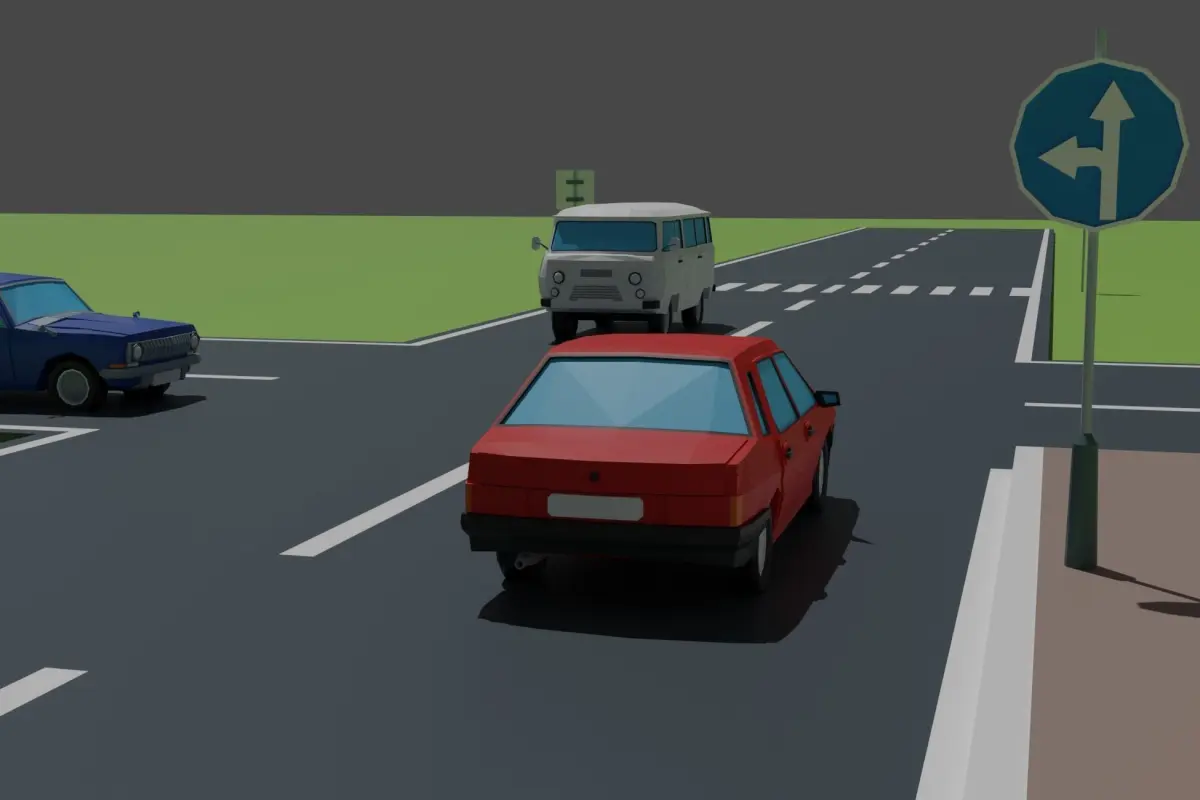 3 road signs (pedestrian crossing - on a thin pole) (stop sign - on a thin pole) (sign forward and left - on a thick pole) in the full version there are 9 road signs each has two types of poles (thick and thin)