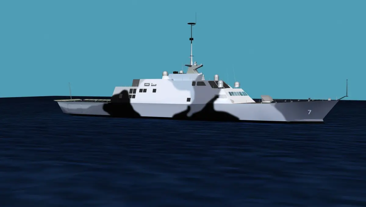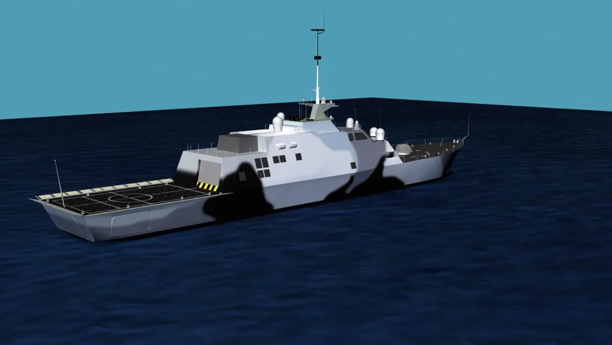 The Littoral Combat Ship was designed for defense of coastal areas against small to medium threats. It was designed to operate at lower cost while being able to take on a wide range of missions. It is fast with cruising speeds as fast as 40 plus miles per hour on the planning hull and the power plant drives water turbines for speed. This vessel is manned by a much smaller crew while automation and simplicity allow the broad range of activities possible.