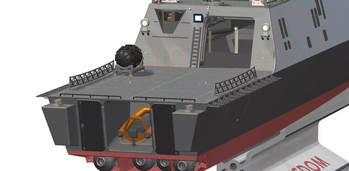 3D model descriptionThe Freedom-Class Littoral Combat Ship is one of the most distinctive and capable vessels in the modern US Navy fleet — a fast, agile, and highly versatile warship designed for operations in shallow coastal waters where larger surface combatants cannot effectively operate. Built for speed, modularity, and multi-mission flexibility, the Freedom Class can be rapidly reconfigured for surface warfare, anti-submarine operations, or mine countermeasures, making it one of the most tactically adaptable ships afloat. This 1:96 scale model brings her to life at an impressive 120 cm from bow to stern, shaped through extensive photographic reference and careful reconstruction of hull lines and deck arrangements. Every major feature of the real vessel is faithfully represented — from the distinctive twin-level superstructure and angular mast assembly to the flight deck, aircraft hangar with operational doors, and the uniquely complex stern section housing the ship's advanced waterjet propulsion system. The model is fully RC-ready from the ground up, with articulated control surfaces, multiple propulsion configurations including single propeller, dual waterjet, and quadruple waterjet options, along with dedicated motor mounts for each — giving builders the freedom to choose exactly how their ship moves on the water. If you are new to RC boat building or are looking for a more budget-friendly entry point, a simplified propeller-only version of this model is also available at a lower price, check our models.3D printing settingsDesigned to be accessible on most standard FDM printers with a minimum print bed of 22×22 cm and 25 cm print height, all hull and deck pieces are sliced to fit comfortably within these dimensions, making this 120 cm warship achievable without any specialist equipment. The hull sections feature precision-engineered alignment details and integrated mounting geometry so pieces come together cleanly and accurately, and dedicated clip types are included to hold everything firmly in place while adhesive sets. Underwater hull and topside components are separated into distinct parts throughout, allowing builders to use different filament colors for the antifouling hull below the waterline and the superstructure above — eliminating an entire painting step straight from the printer. For color printer owners, a 3MF file with full embedded colors and textures is included for a vivid, ready-to-display result. All deck panels are removable and can be configured as functional RC access lids or secured using standard 5mm diameter, 2.5mm tall magnets for tool-free access during RC operations — particularly convenient when working on electronics and batteries on the water — or glued shut permanently for a clean display finish, with screw holes on every panel for easy reopening whenever needed. The package contains a comprehensive library of accessories and optional details — including a detailed captain's bridge interior, deck weapons, masts, barriers, rafts, figures, display stands, and much more — giving every builder full control over the final level of detail and finish they want to achieve.