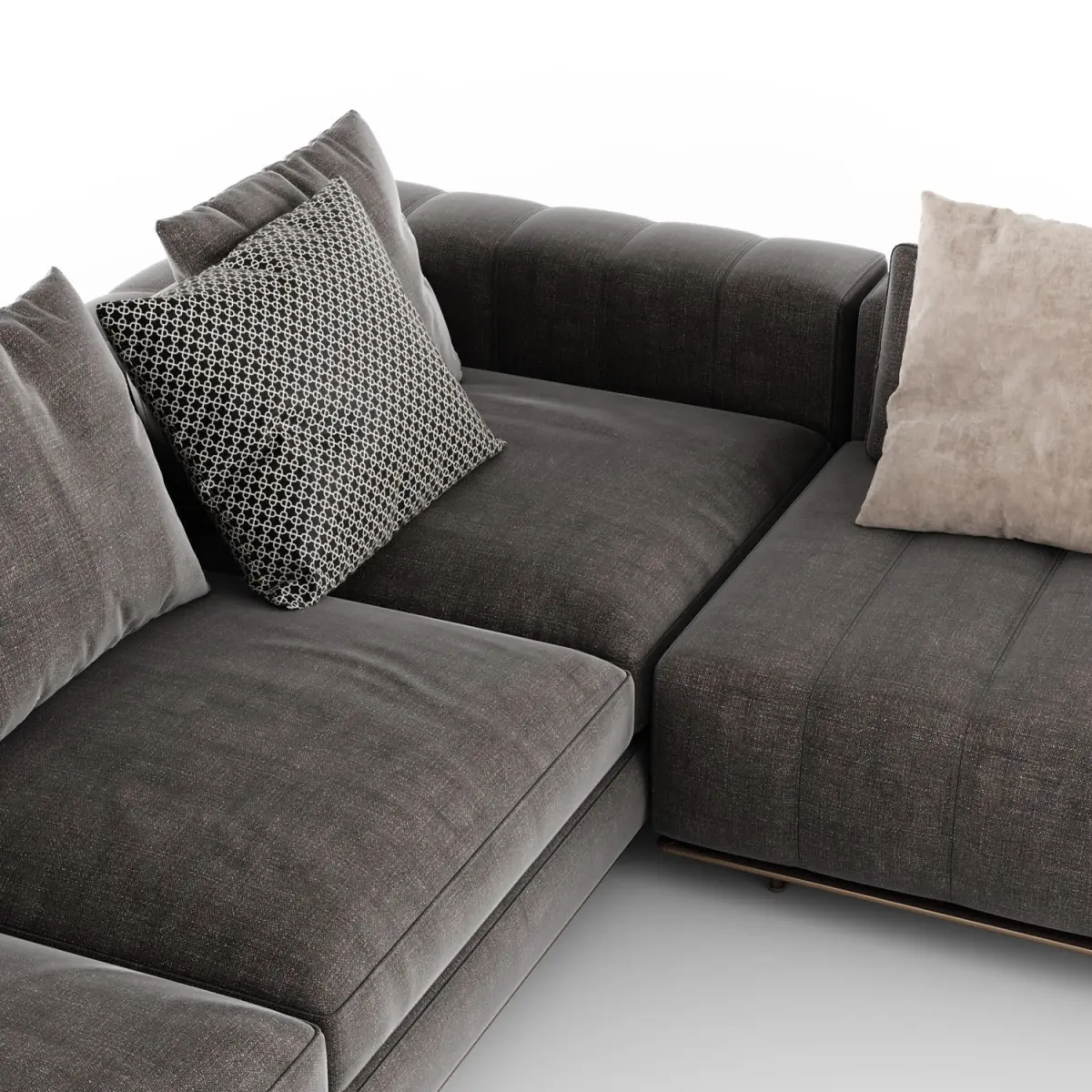 The seat cushions of the Freeman “Duvet” elements have a core insert in polyurethane, wrapped in memory foam padding and topped with a layer of soft down.For an overall effect of extreme softness, the entire structure of the Freeman “Duvet” is wrapped in a heat-sealed fiber covering.