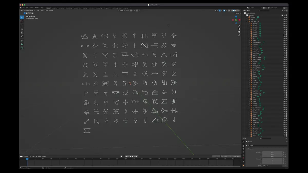 101 freemason and alchemist ancient symbol 3d modeled. The most complex symbols contain 20,000 polygons. Each symbol is named. no texture.