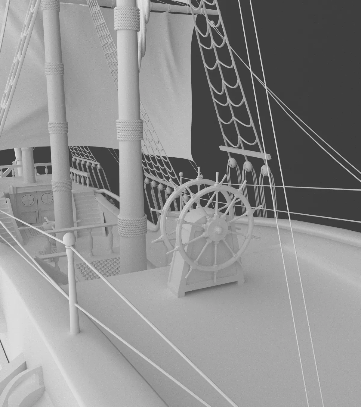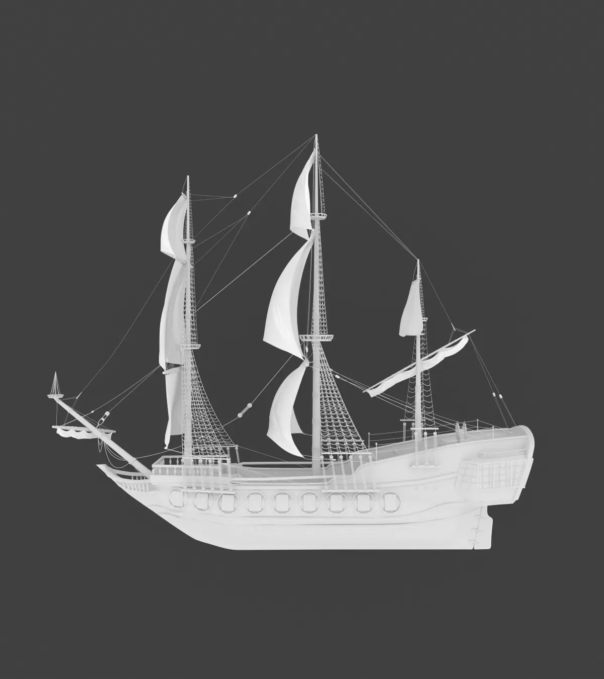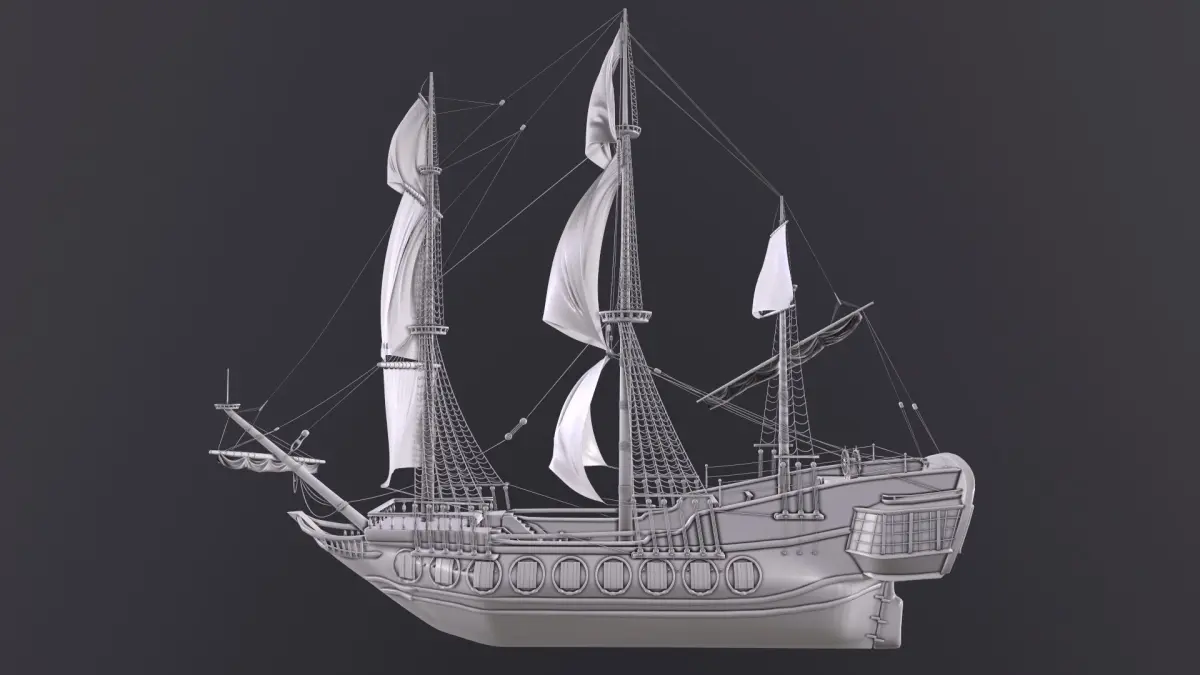High-poly model of sailing ship.