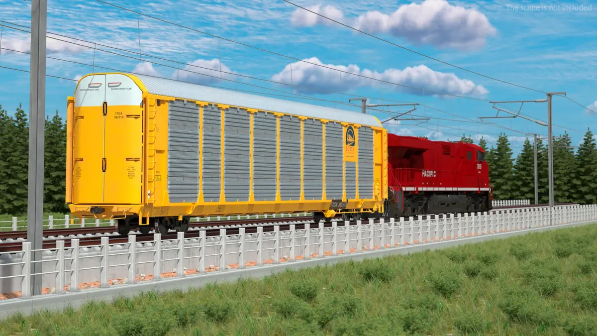 For freight logistics, railway transportation, vehicle shipping, industrial design, transport infrastructure projects, automotive logistics, railway network simulations, and transportation engineering promotional projects.