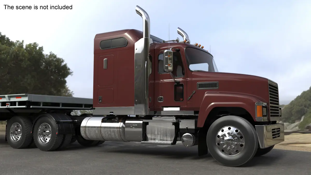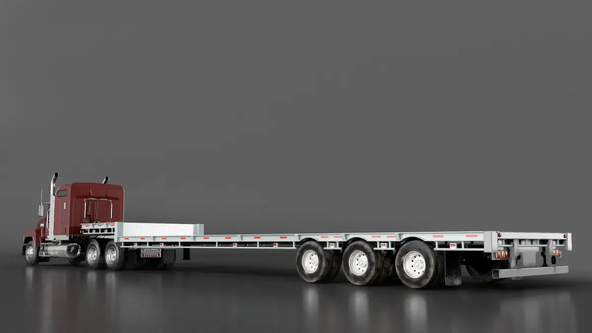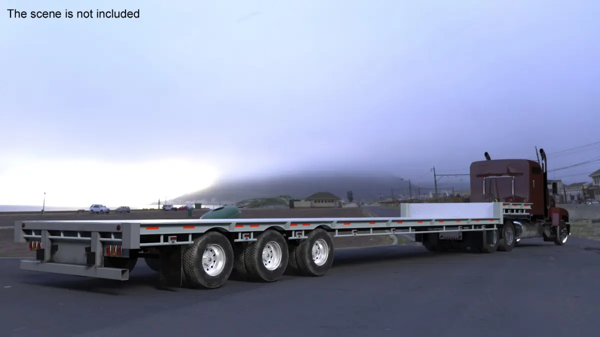 Freight Truck with Flatbed Semi Trailer is a three-dimensional model of powerful freight autotruck that is a versatile heavy-duty truck (designed for long hauls) with a heavy duty trailer machinery that is a specialized semi-trailer.