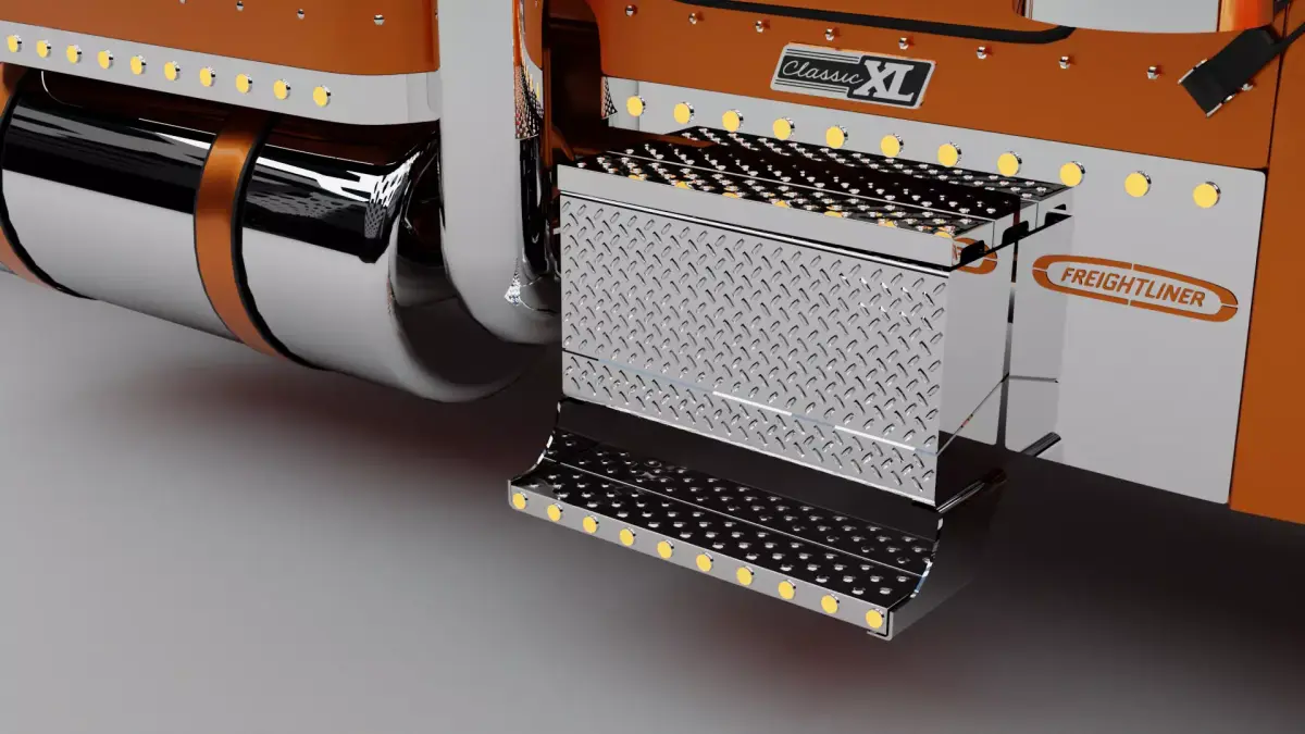 El modelo 3D del Freightliner Classic XL representa un camión de carga pesada, caracterizado por su diseño clásico y robusto. Este modelo incluye detalles como una larga parrilla cromada, guardabarros pronunciados, dobles escapes verticales y una cabina de gran tamaño tipo sleeper, ideal para viajes largos. La malla 3D suele estar optimizada para visualizaciones en tiempo real o renderizados detallados, e incluye elementos como ruedas, chasis, interiores básicos y luces. Es ideal para proyectos de simulación, juegos, animación o visualización de transporte.