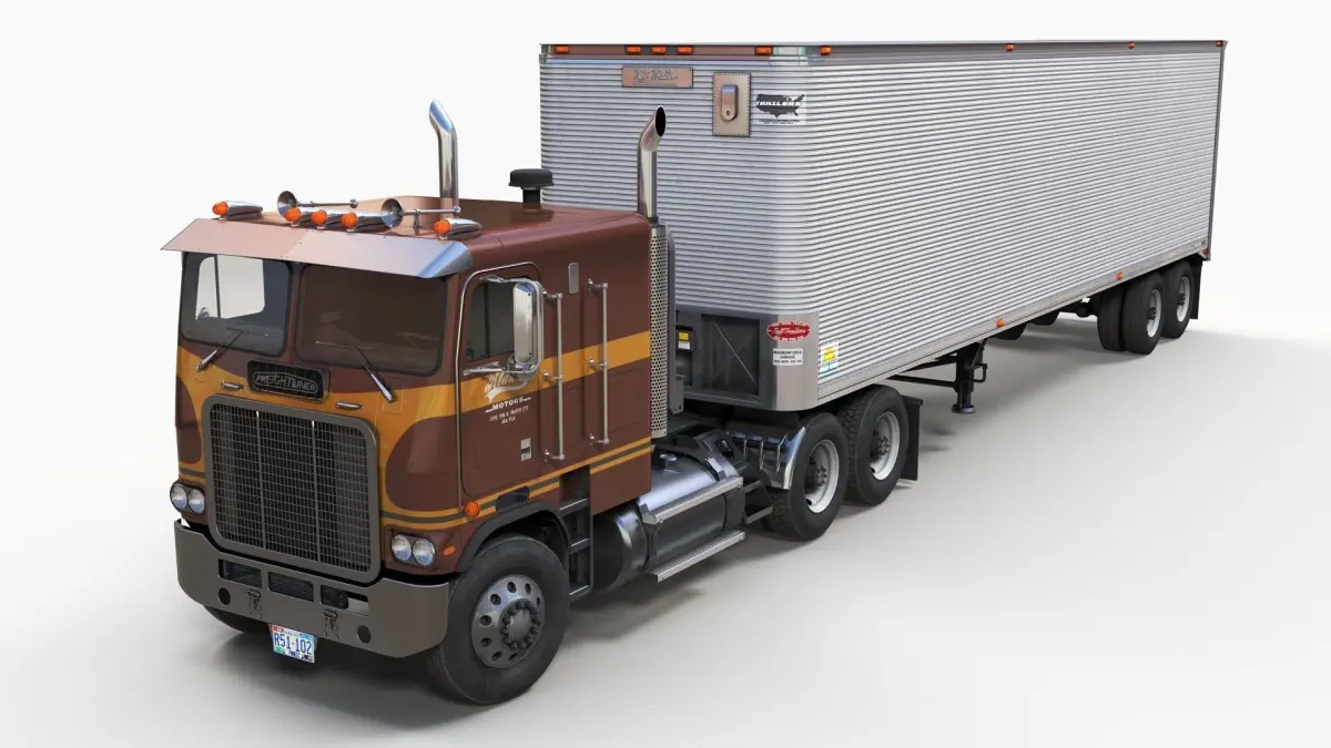 Freightliner Powerliner dryvan trailer game ready model.