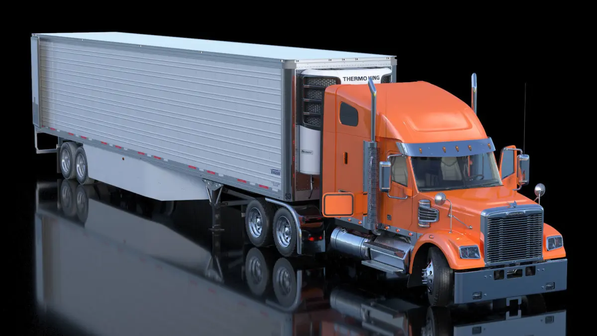 <h1>Freightliner Truck with Reefer Trailer Rigged is a three-dimensional model of a freight transportation semi-trailer vehicle with temperature control feature.</h1>