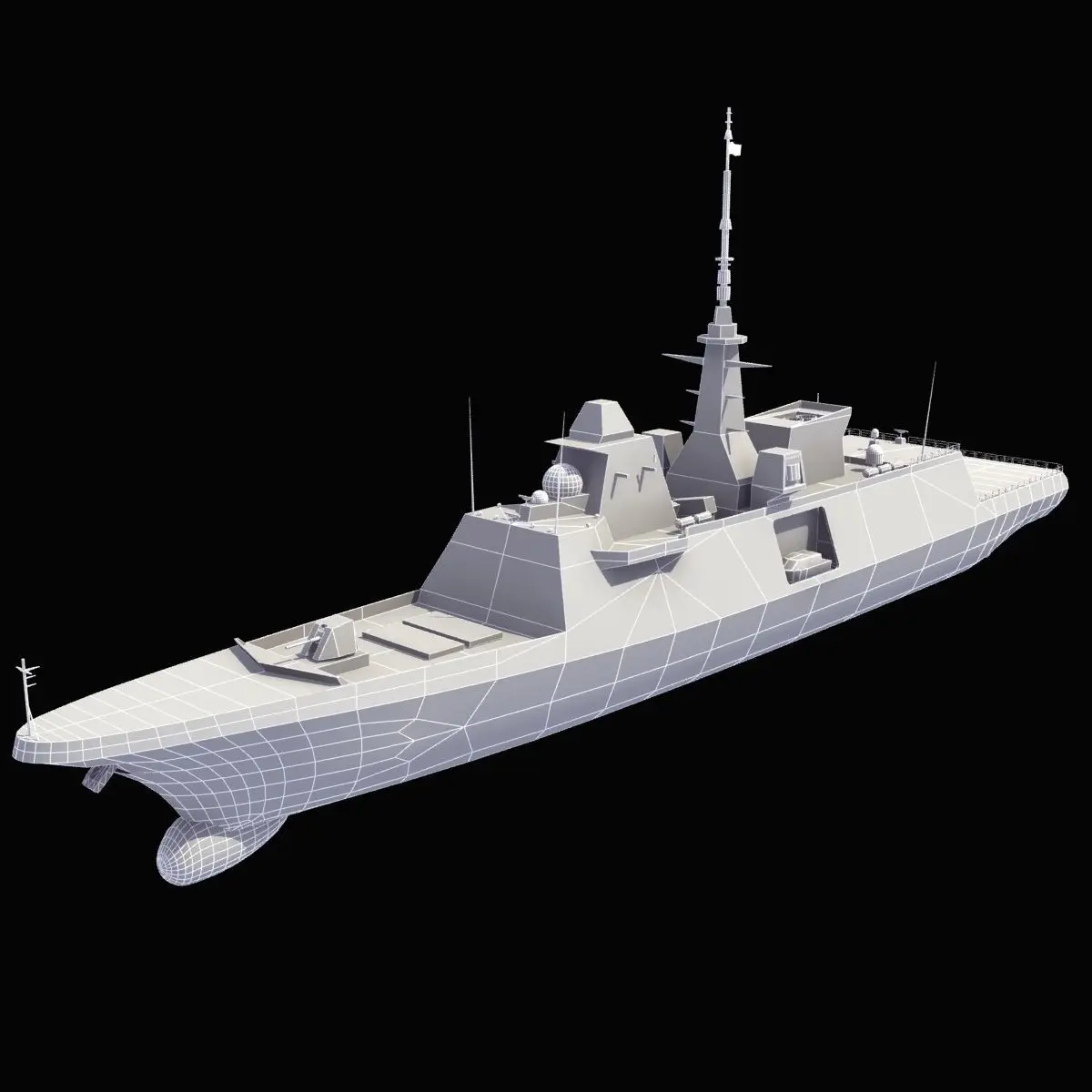FREMM Aquitaine class frigate used by the French Navy. Great multipurpose 3D model (ideal for offline rendering or real time uses such as games or simulation).