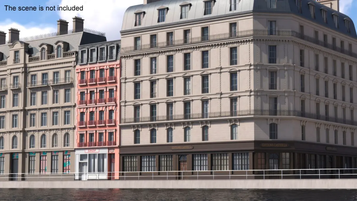 French Buildings Collection is a versatile set of 3 high quality, photo real 3d models that will enhance detail and realism to any of your rendering projects. The model has a fully textured, detailed design that allows for close-up renders, and was originally modeled in 3ds Max 2014 and rendered with V-Ray. Renders have no postprocessing.