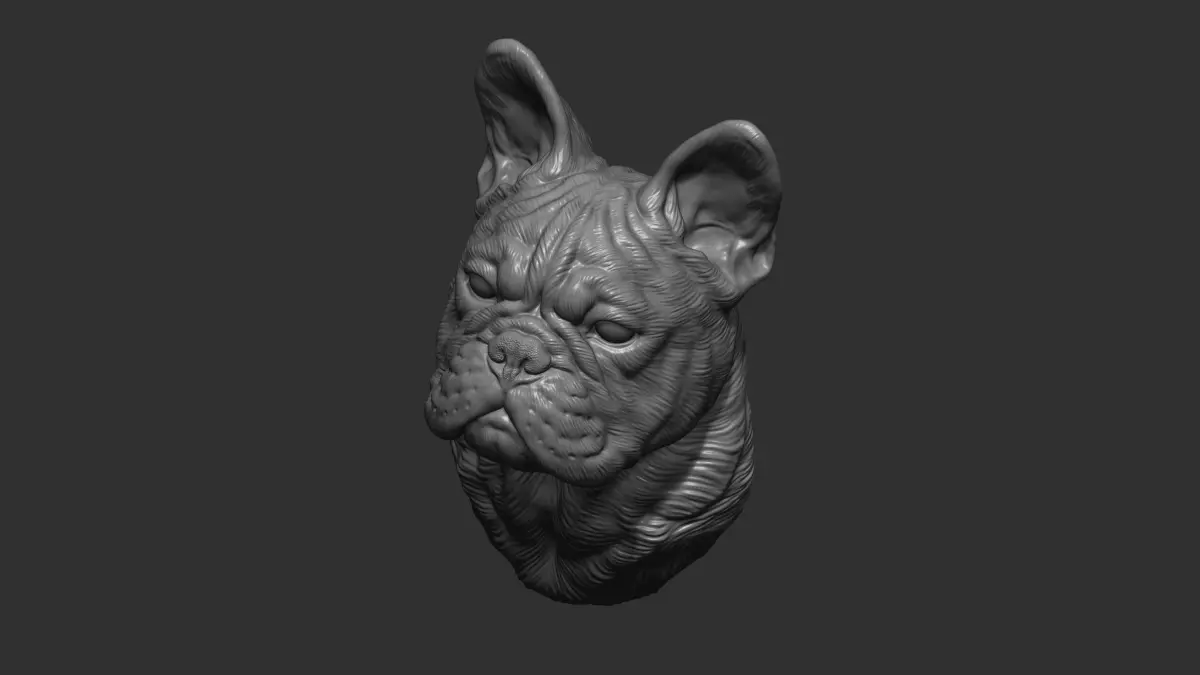 400K STL, OBJ triangulated mesh, French bulldog on the wall