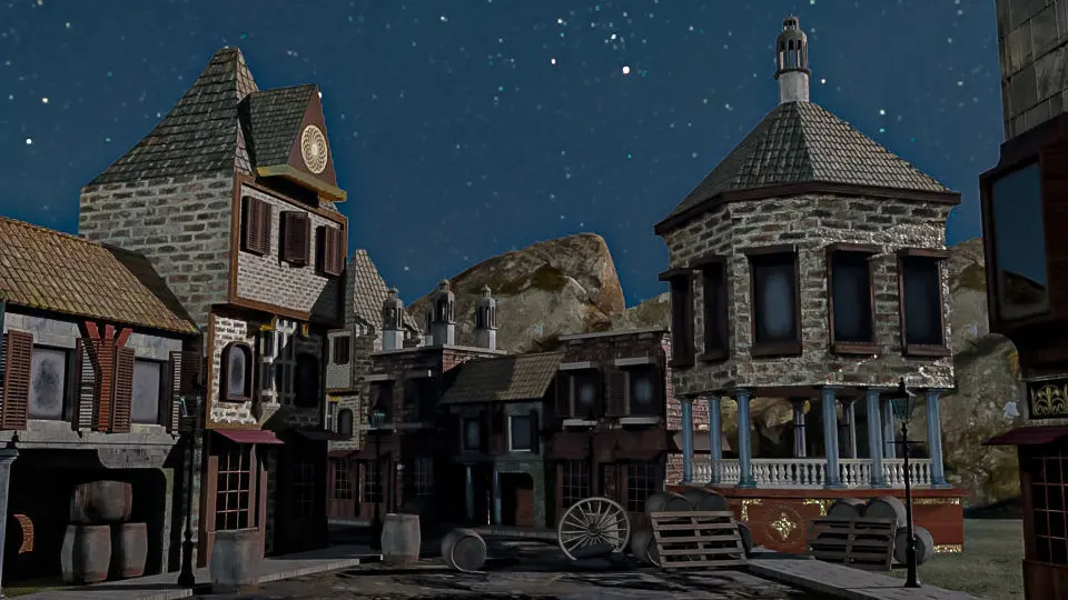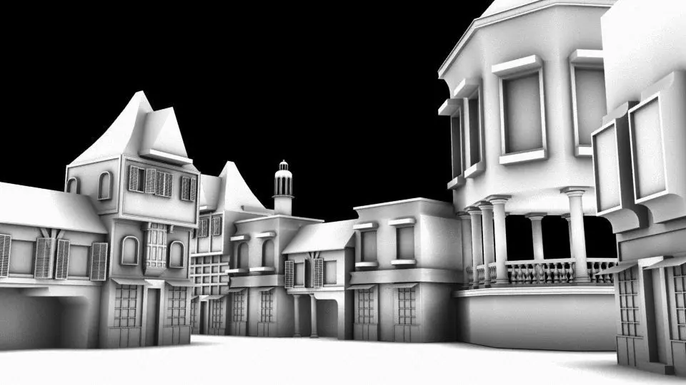 Texturing and Shading:Apply textures to the buildings to simulate aged stone or brick materials typical of the era. Use Maya’s UV mapping tools to ensure textures align correctly with the geometry. Pay attention to details such as weathering effects, subtle dirt accumulation, and faded paint to enhance realism.