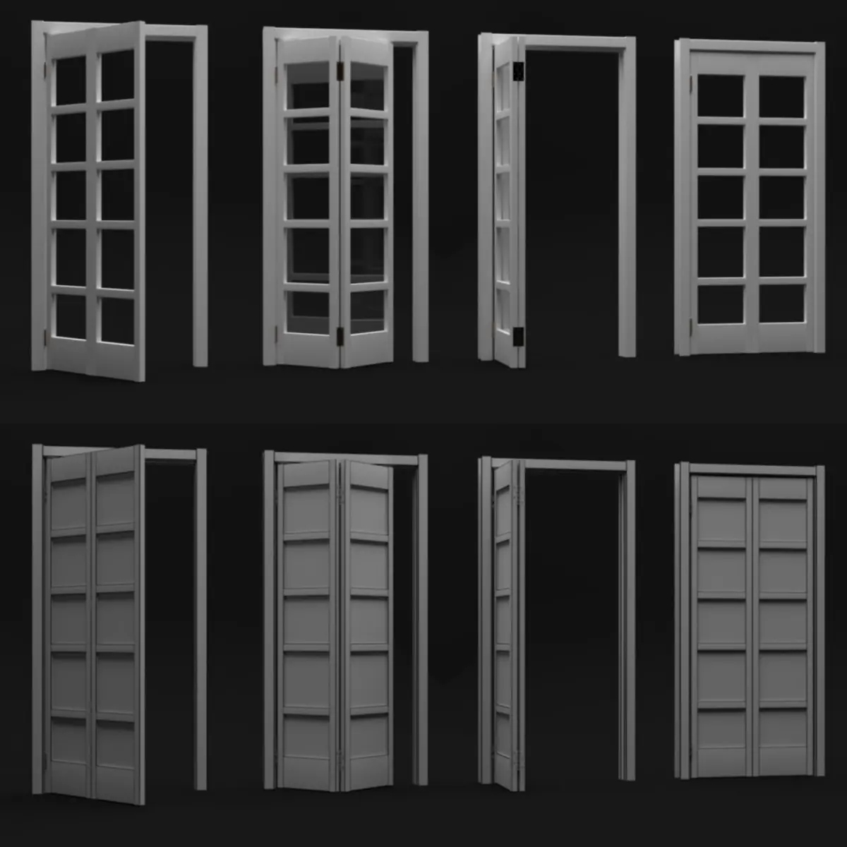 The door in the French style. the model uses movable elements for easier opening of the interior door.