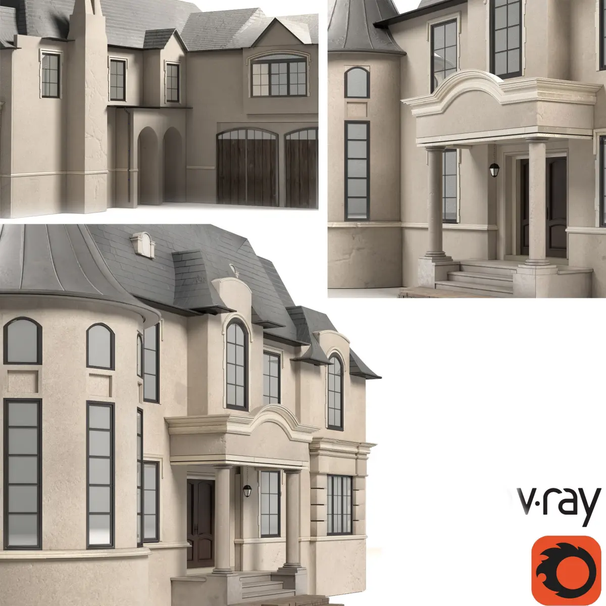 Name: French_HousePBR: YesPreview: YesUnits: CentimetersDimension: 2725.74 x 2530.6 x 925.93Polys: 230 825Model Parts: 39Render: Vray+Corona