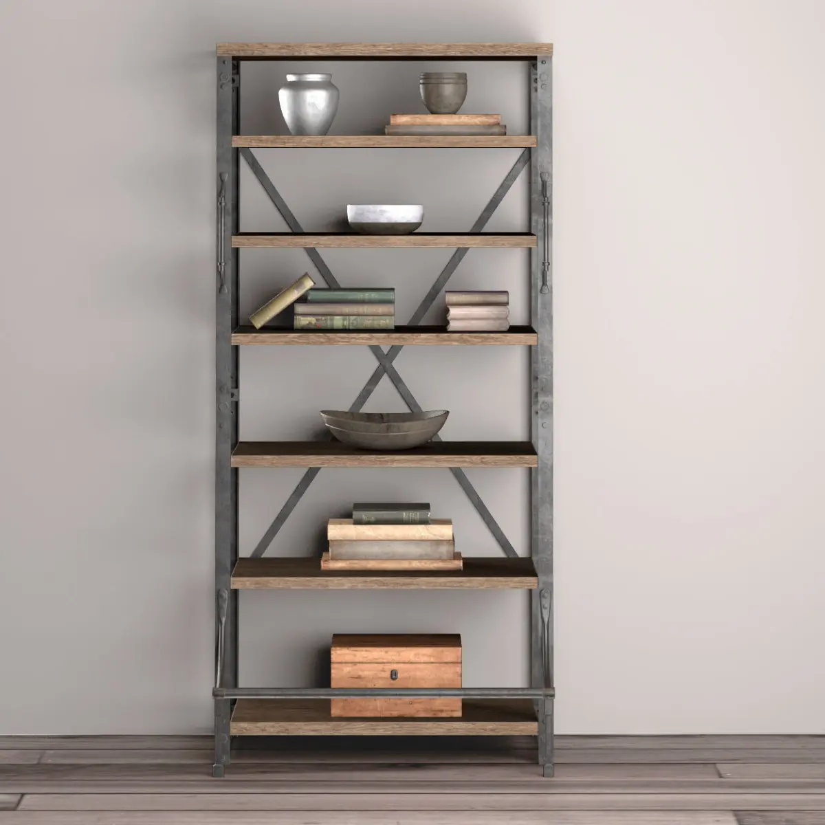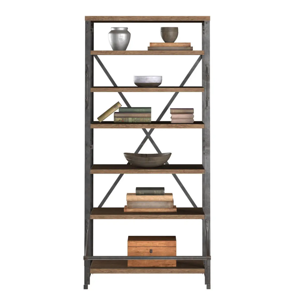 This model: French Library BookcaseTags: 3d model set shelves rust iron shelf book cup bowl pitcher chest loft art design furniture vintage industrial styleDimensions: 107 * 61 * 201Made in 3d max 2011Visualization in the V-Ray 2.00.02Polygons: 92208Summits: 80322The model is located in the scene at the originAll objects and groups have friendly namesAll materials have meaningful namesAll textures and maps have meaningful namesAll the way to the maps and textures removed.This should open without error, and additional windows.The archive copy in FBX and OBJ formatsPerfect for your interior renderings for close-ups and for the medium.