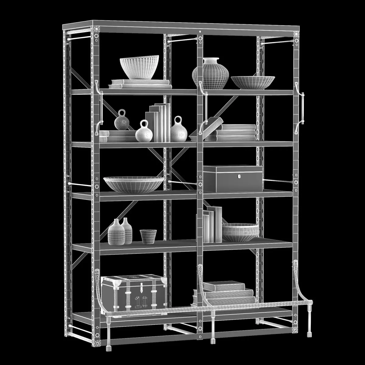 Tags: 3d model of a set of shelves rust iron shelf book cup bowl pitcher chest loft art design furniture vintage industrial style