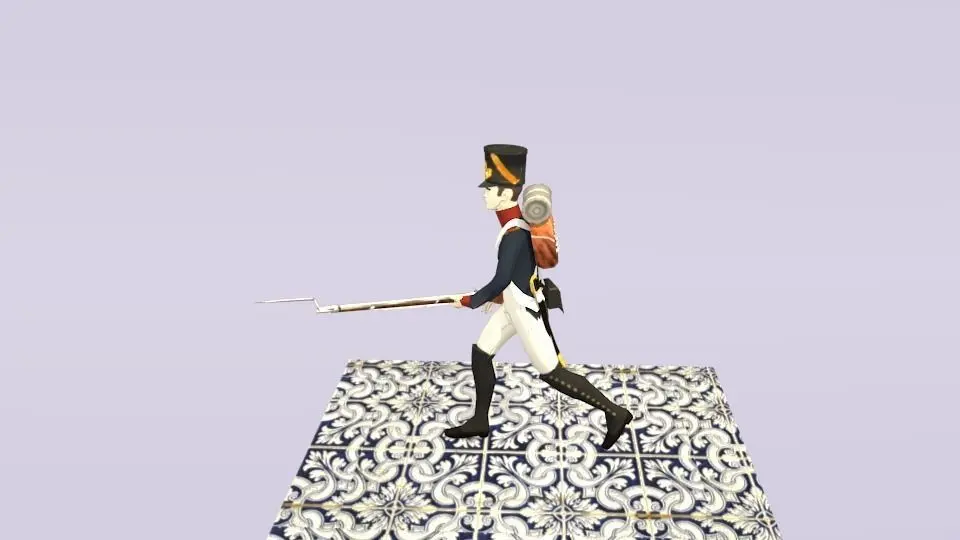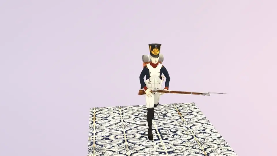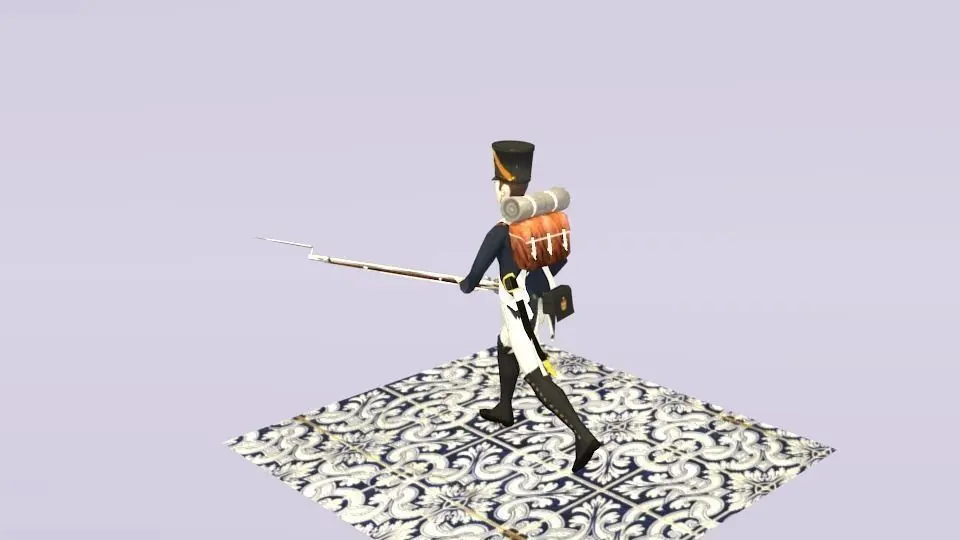 The soldier itself has 10 objects:A cartridgeA havresackA musketAn infantery saber called sabre briquetThe human bodyThe vestThe trousersA shako( the hat)And the meta rig
