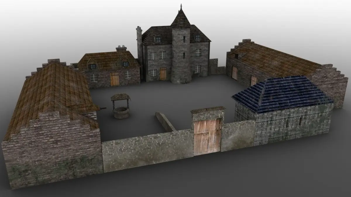This a low-poly model of a typical manor that you could find on various locations in France countries. These manors, mix of manors and farms where mostly built in the mid-XVth century. The object is below 5000 quads, with 4 sets of base-color/normal/height/metal/rough textures. Comes in FBX (with embedded diffuse and height), .OBJ and .LWO