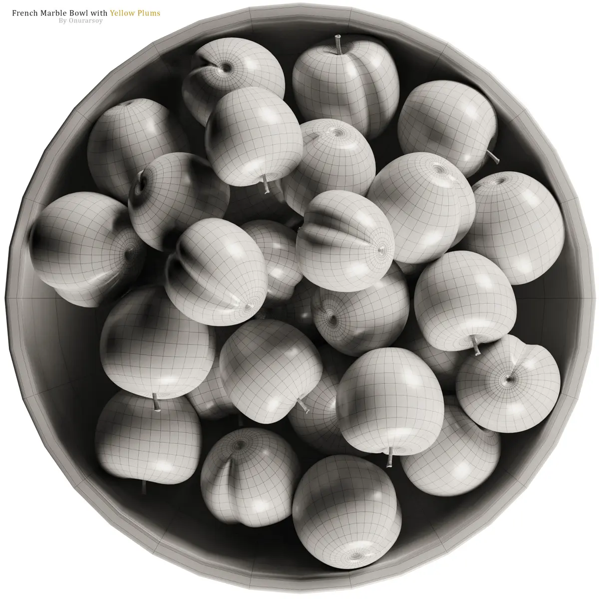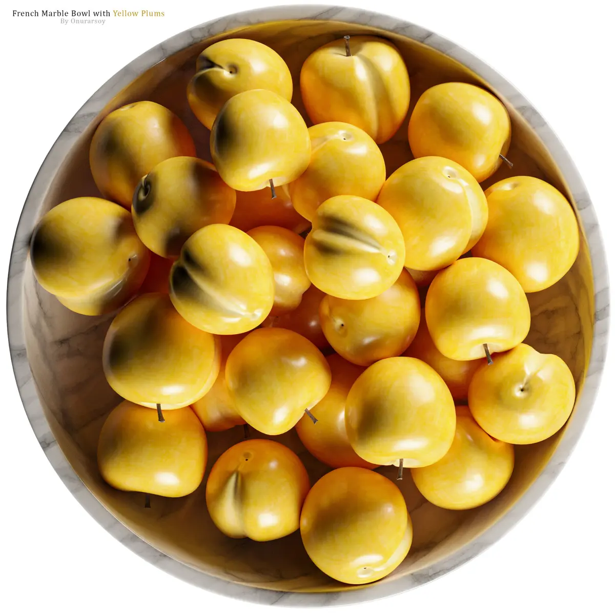 Crate & Barrel - French Kitchen Marble Fruit Bowl with Yellow Plums4k textures, good for close-upsHappy Rendering!