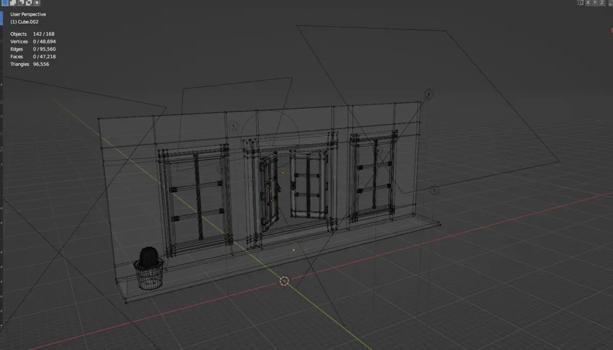 French style window designed in blender with one plant aside, no textures needed. its is made with edit mode no scuplting used, window material is detailed with few objects color is only used on wall and on plant . every object is edited by me it has no rig or animation.