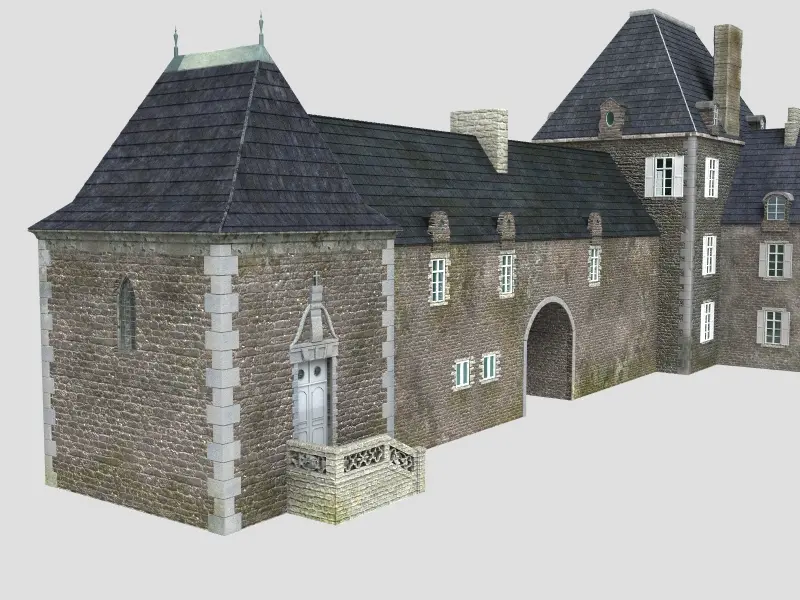 It is not an exact reproduction of an existing castle, but a mix between three of them. The model is composed of five buildings set together. Each building comes with a 4096*4096 set of : texture map, displacement map, normal map, and, when needed, specular map.