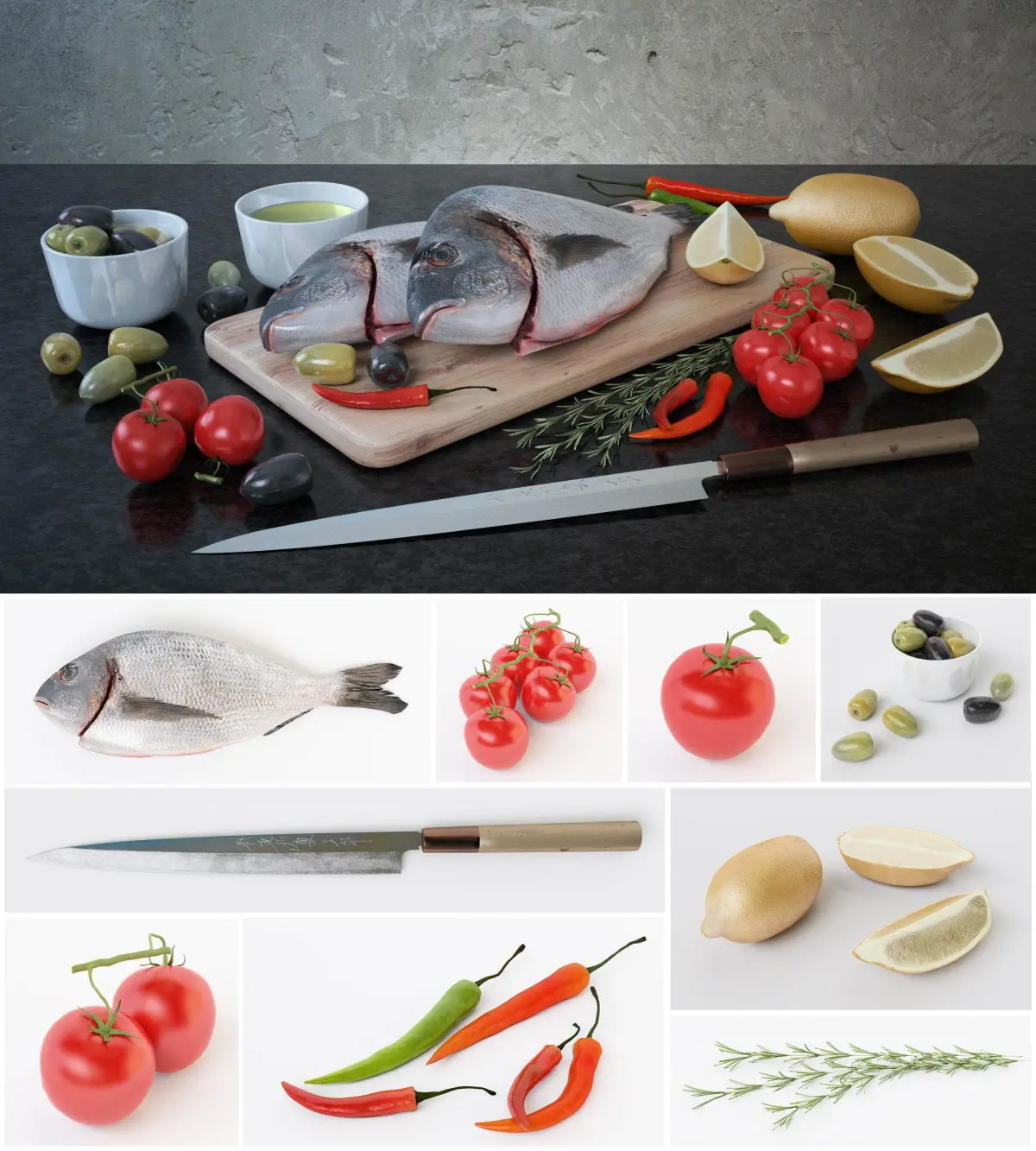 Cooked fish located here: https://www.cgtrader.com/3d-models/food/miscellaneous/cooked-fish