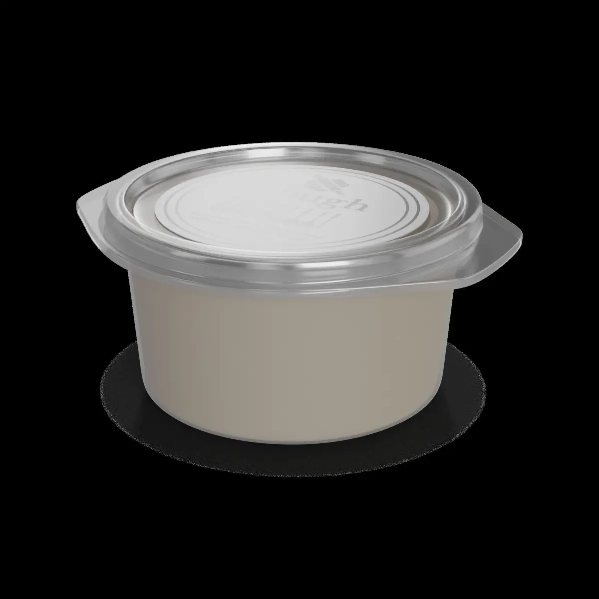 Dough: Get creative in the kitchen with this versatile dough. The packaging is a clear, resealable plastic container, allowing you to see the smooth texture of the dough inside. The label on the packaging features a minimalist design, with the text Dough in bold, black font, along with a graphic of a rolling pin and various kitchen utensils.