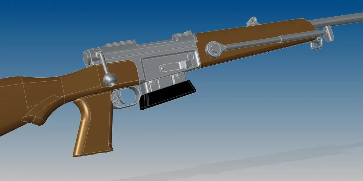Full assembled model of French sniper rifle and its 7,5x54mm bullet.