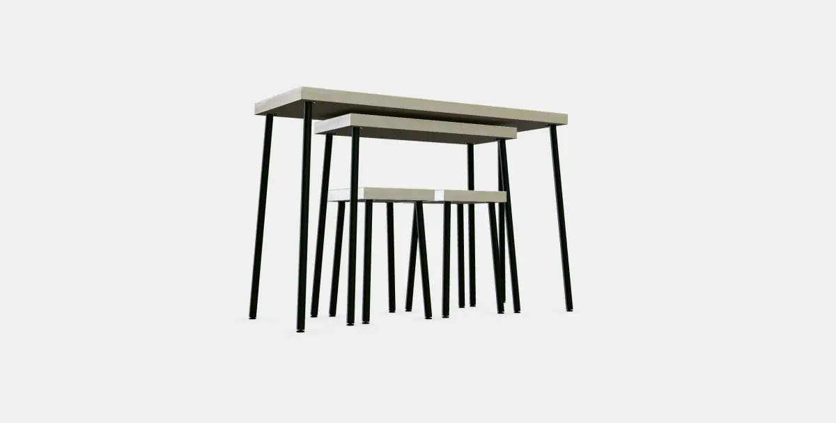 FRIDNAS Nesting tables with stools set of 4 offers realistic textures with detailed PBR materials, removing the need for third-party plugins.