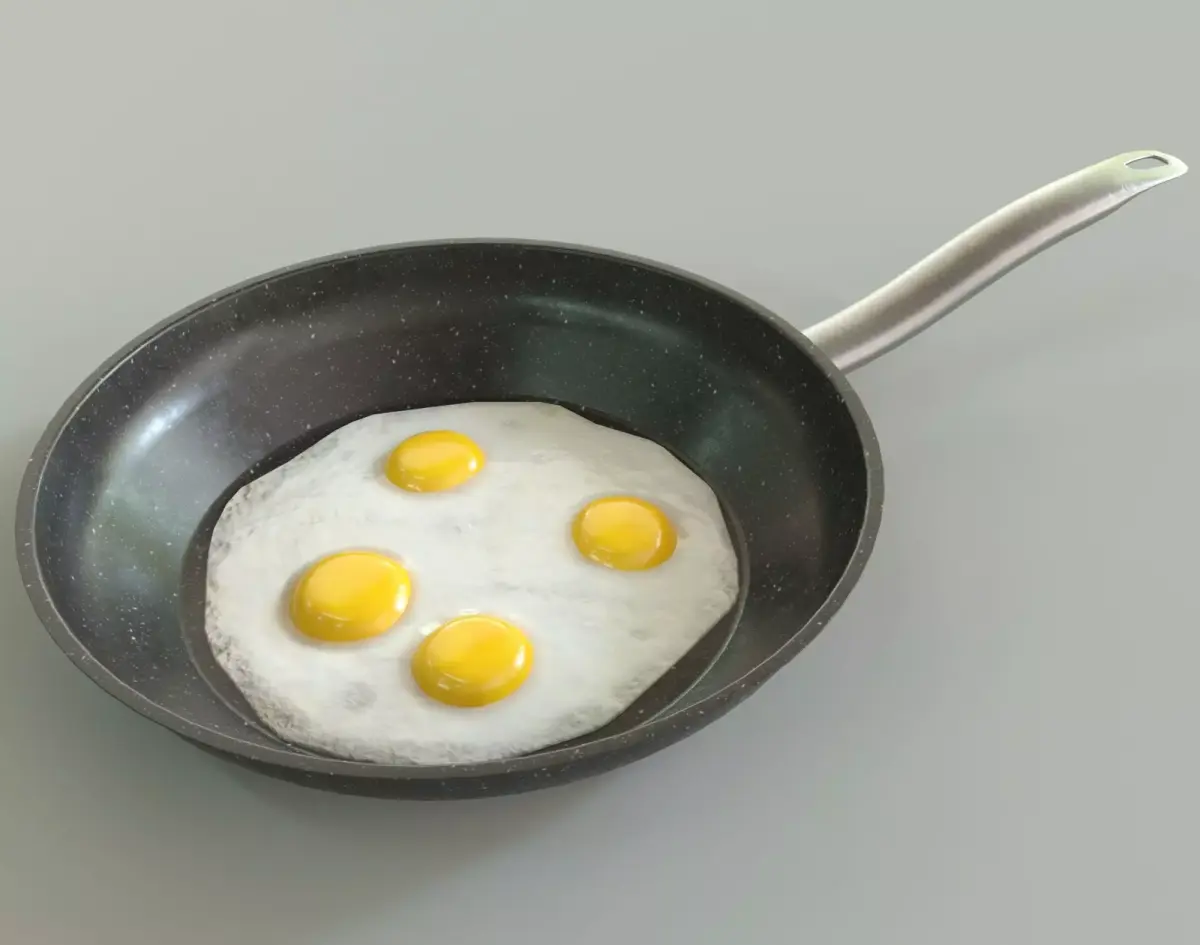 - The pan and the eggs are separate models, so they can be used separately