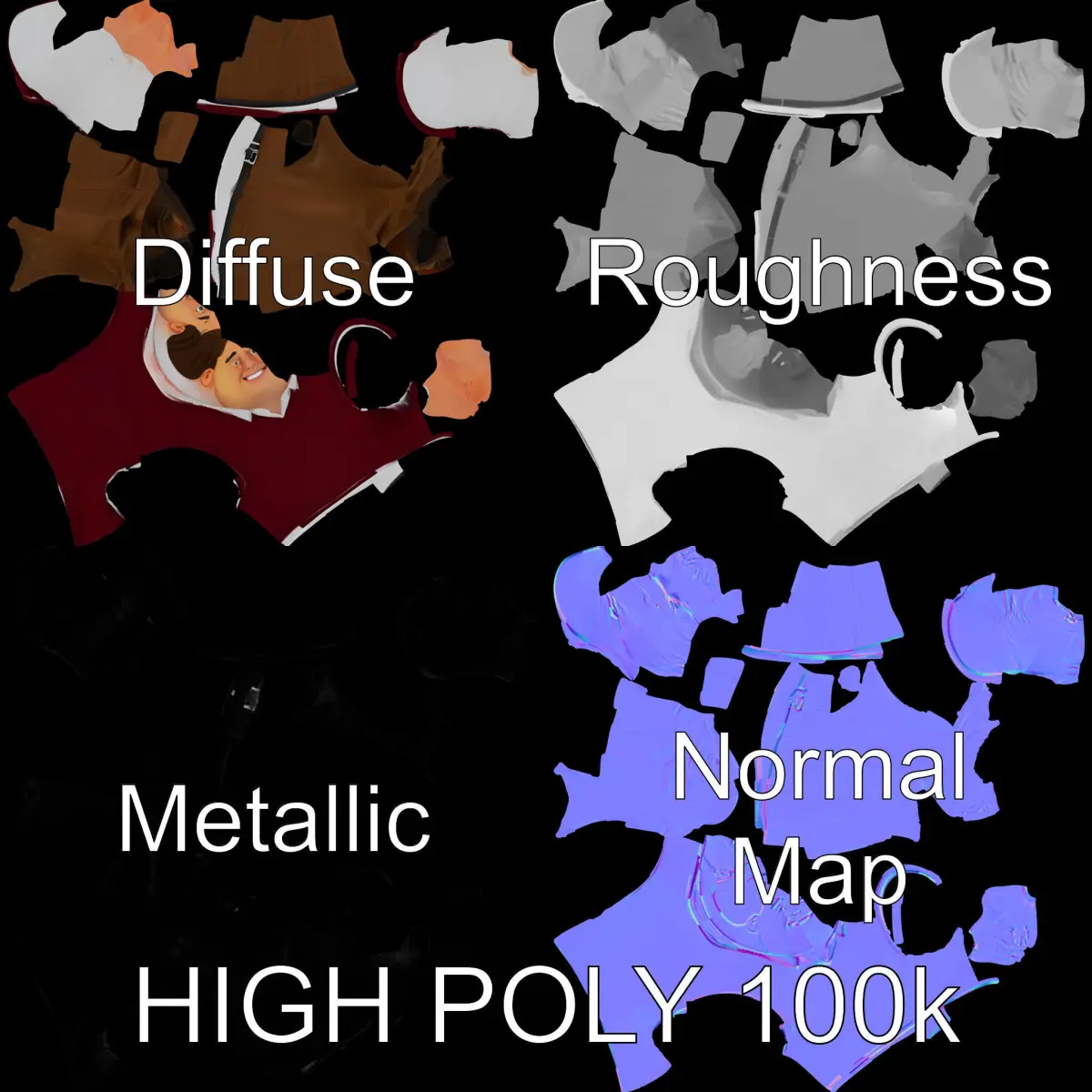 This character model comes in 3 levels of detail: low-poly for mobile games, mid-poly for standard games, and high-poly for cinematics. The model is fully rigged and ready for animation. It includes PBR textures (4096x4096), including diffuse, normal maps, and metallic/roughness maps. The character is provided in T-pose and can be easily imported into any modern game engine or 3D software. Perfect for games, animations, or virtual reality applications. Please like and comment if you find this model useful!