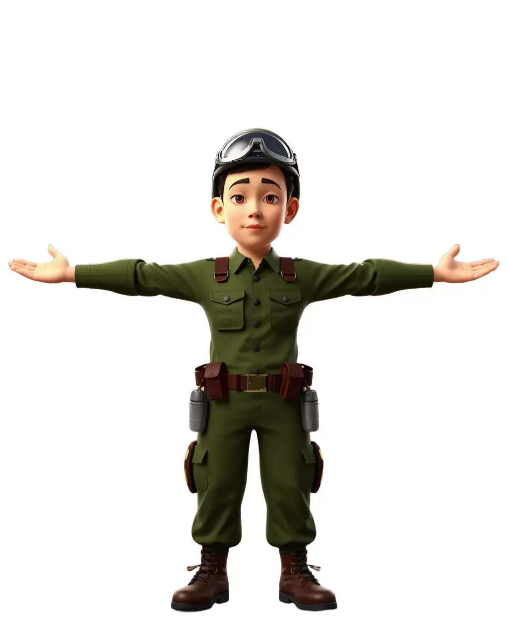 This 3D model features a friendly pilot character in a detailed military outfit, perfect for games, animations, and VR environments. The model includes a pilot helmet, goggles, and utility belt, all crafted with precision to enhance realism. Each model has 3 levels of detail: low-poly (1000 triangles for mobile), middle-poly (10,000 triangles for environment), and high-poly (100,000 triangles), allowing for use in production rendering (such as 3ds Max, Maya, Cinema4D, Blender, Vray/Corona/Cycles, and others), game engines (Unity and Unreal compatible), and interactive presentations, offering flexibility based on the LOD System principle. Ideal for war-themed scenarios, educational simulations, or as an atmospheric addition to any aviation-related project. The model's textures are PBR, Diffuse, NormalMap, and reflection/roughness/metallic, which are suitable for any modern rendering engine. All models accurately unwrapped with no overlapping UVs. All textures are 4096*4096 in size.If you like this model, please leave a comment and like!