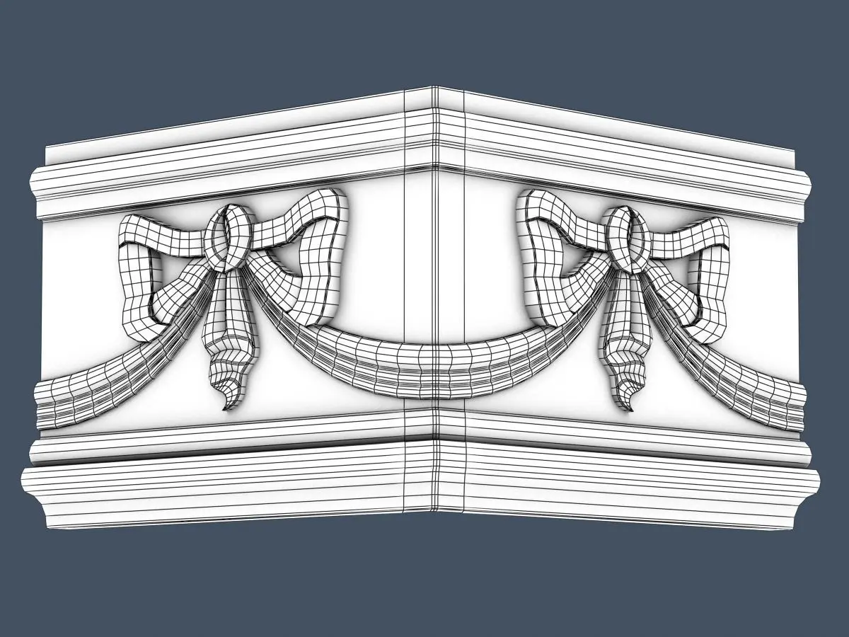Model consists of 3 modular pieces; a center ,inner and outer corner that can be seamlessly combined. Module size can be seen in the wireframe images.Naming convention used is: Frieze_### where ### stands for straight/inner/outer.Polygon count shown in the 3D model specification section is the sum of all 3 modules.Model contains only tris and quads, with good clean topology.Model is 10cm (3.9 inches) in height.Topology is set up so that model can be used without subdividing/smoothing as a background element.In case the model is to be used as the center piece of your render it can be subdivided/smoothed without any changes in its silhouette.