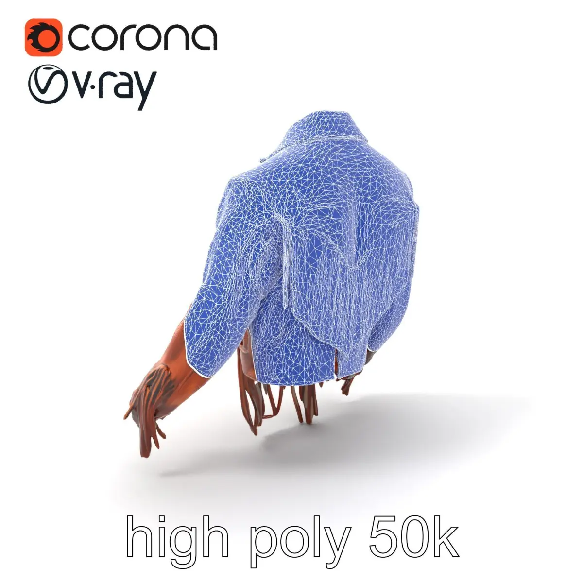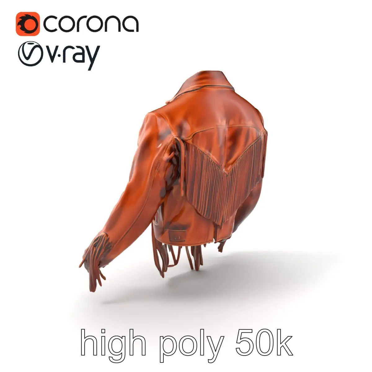 Each model has 3 levels of detail: low-poly, middle-poly, and high-poly, which allows for the use of this model in production rendering (such as 3ds max, Maya, Cinema4d, Blender, Vray/Corona/Cycles and all other), game engines (Unity and Unreal compatible), and interactive presentations, providing a choice of detail based on the LOD System principle. This fringed suede jacket model is perfect for use in historical or cowboy-themed games, fashion showcases, or vintage-inspired animations.