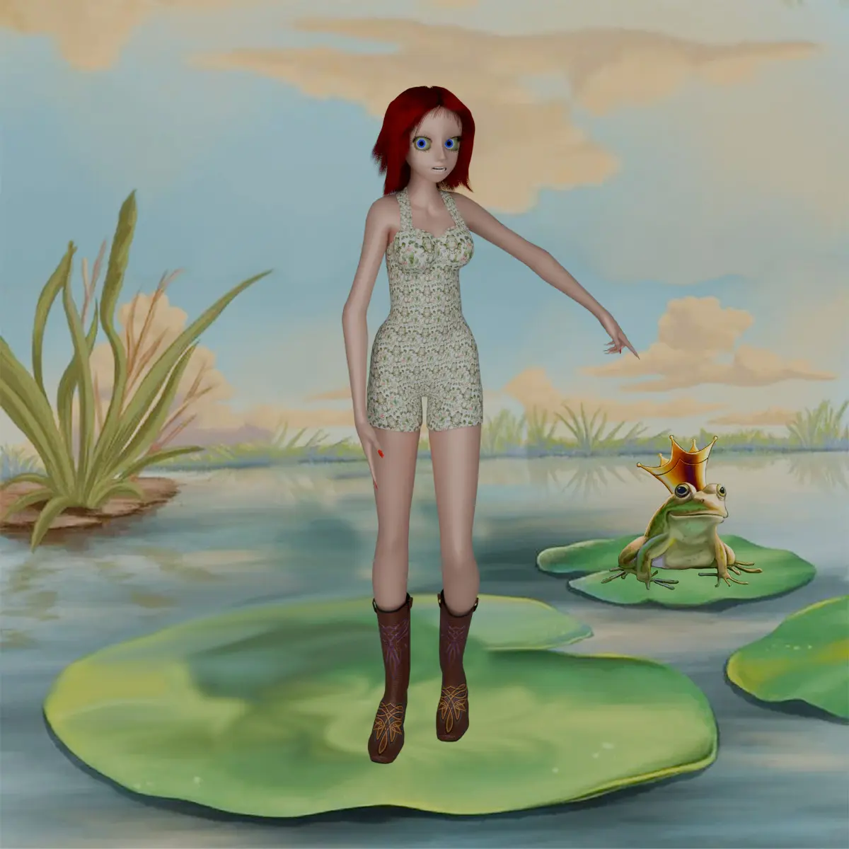 This Character Model is a young girl with large frog like eyes. This model is suitable for use in any Blender 4.0 or later version scene or animation.This model file contains 13 objects.This model contains only node color and textures.All preview images are rendered with CyclesNo Photoshop or other compositing software used after being rendered. Product is ready to render out-of-the-box.