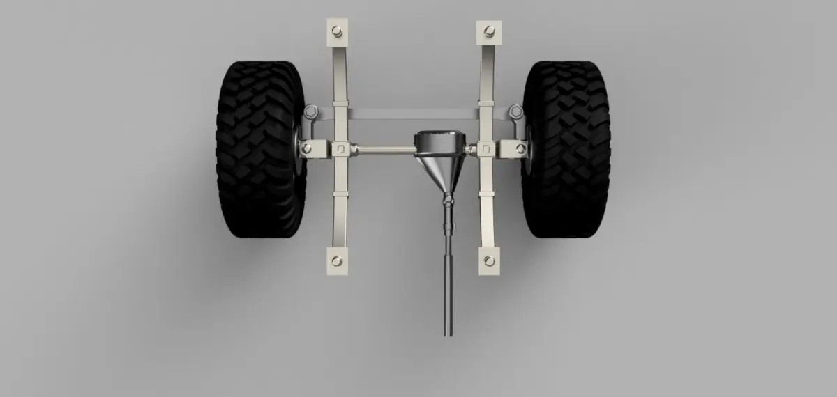 Hello, this is a rudimentary redesign for a post apocalyptic mod for Revel 85-7222. This file represents front axle, suspension, transfer box, wheels and rims. Its purpose is to accomodate the huge wheels.There are 2 versions (depending on capabilities of your printer) that allows you to 3d print it in place or print is as different parts and then glue them together.