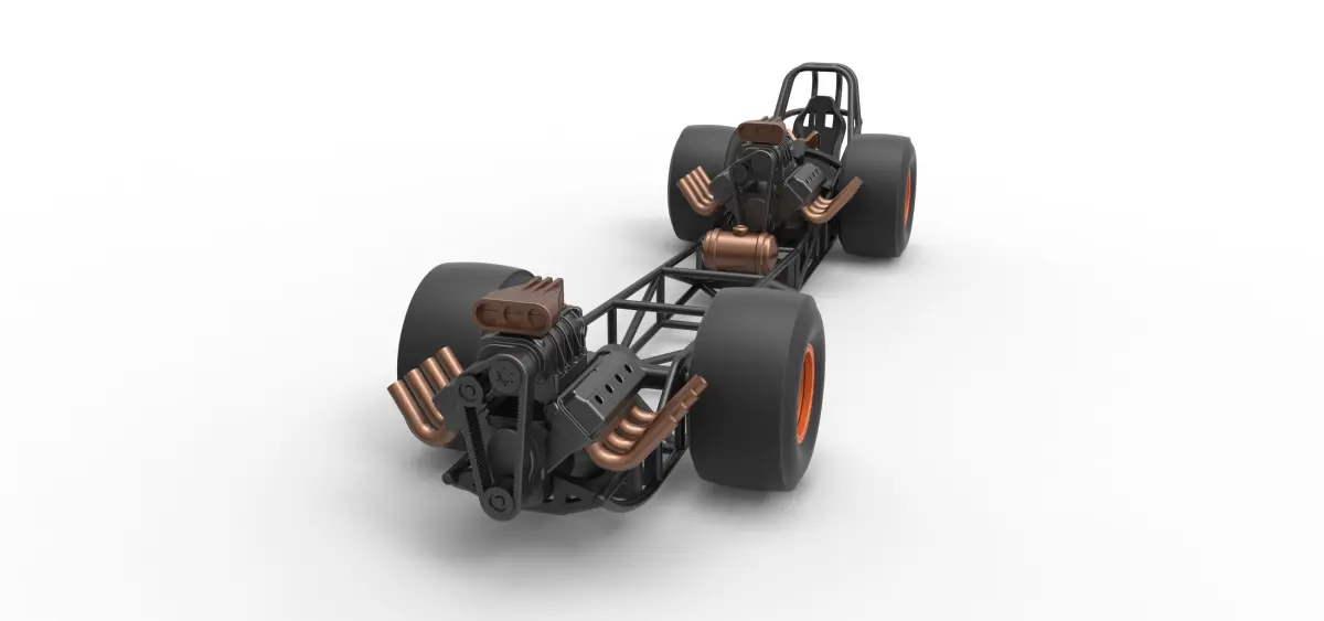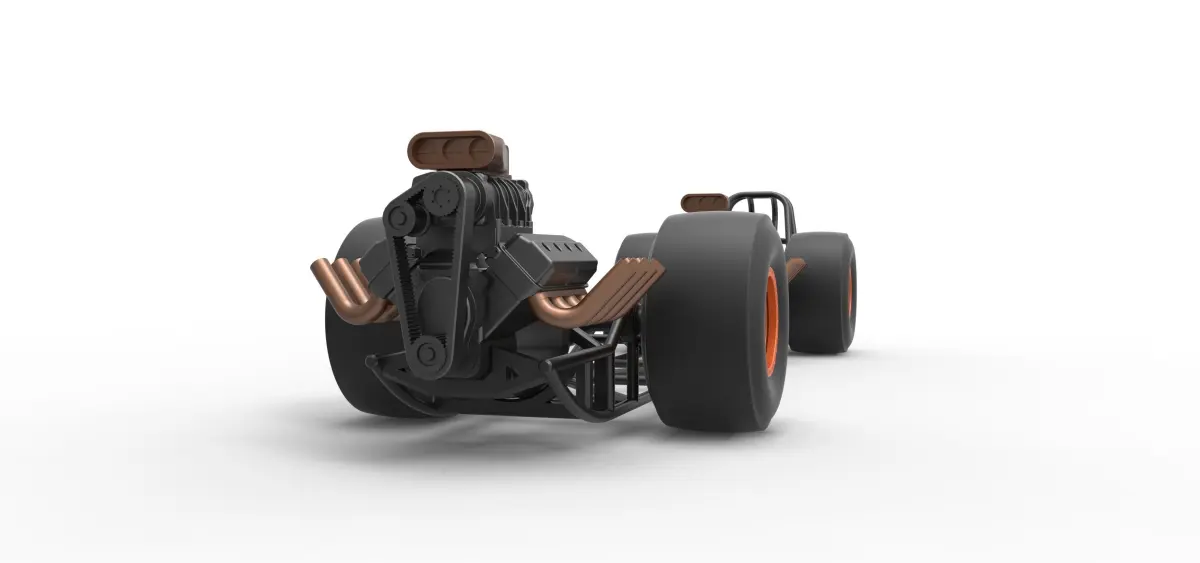 The model consists of parts: Air intakes, Body part 1,2, Engines, Left exhaust pipes, Right exhaust pipes, Rims, Seat, Shifter, Steering wheel, Tank, Tires.