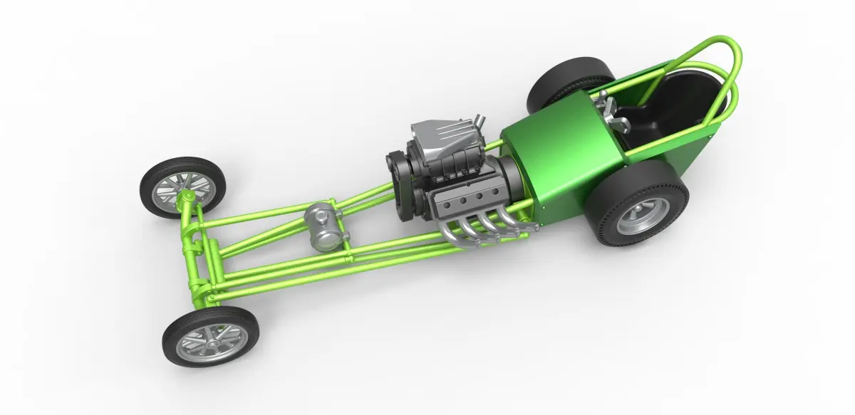 The model consists of parts: Air intake, Body, Engine, Front rims, Front tires, Left exhaust pipes, Rear rims, Rear tires, Right exhaust pipes, Seat, Shell, Shifter, Steering wheel, Tank.