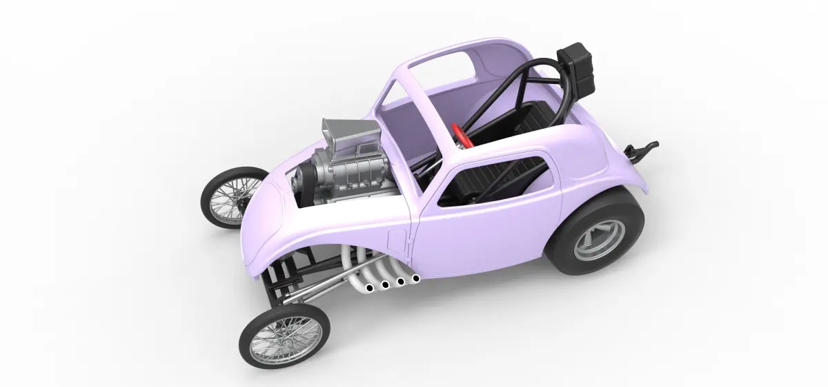 The model consists of parts: Engine, Frame, Front rims, Front tires, Left exhaust, Parachute bag, Rear rims, Rear tires, Right exhaust, Scoop, Seat, Shell, Shifter, Steering wheel, Tank.