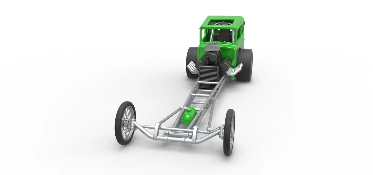 The model consists of parts: Air intake, Body, Engine, Front rims, Front tires, Left exhaust pipes, Radiator, Rear rims, Rear tires, Right exhaust pipes, Seat, Shell, Shifter, Steering wheel, Tank.