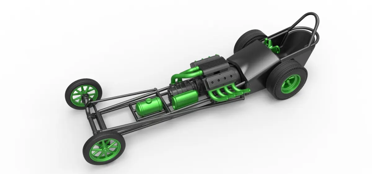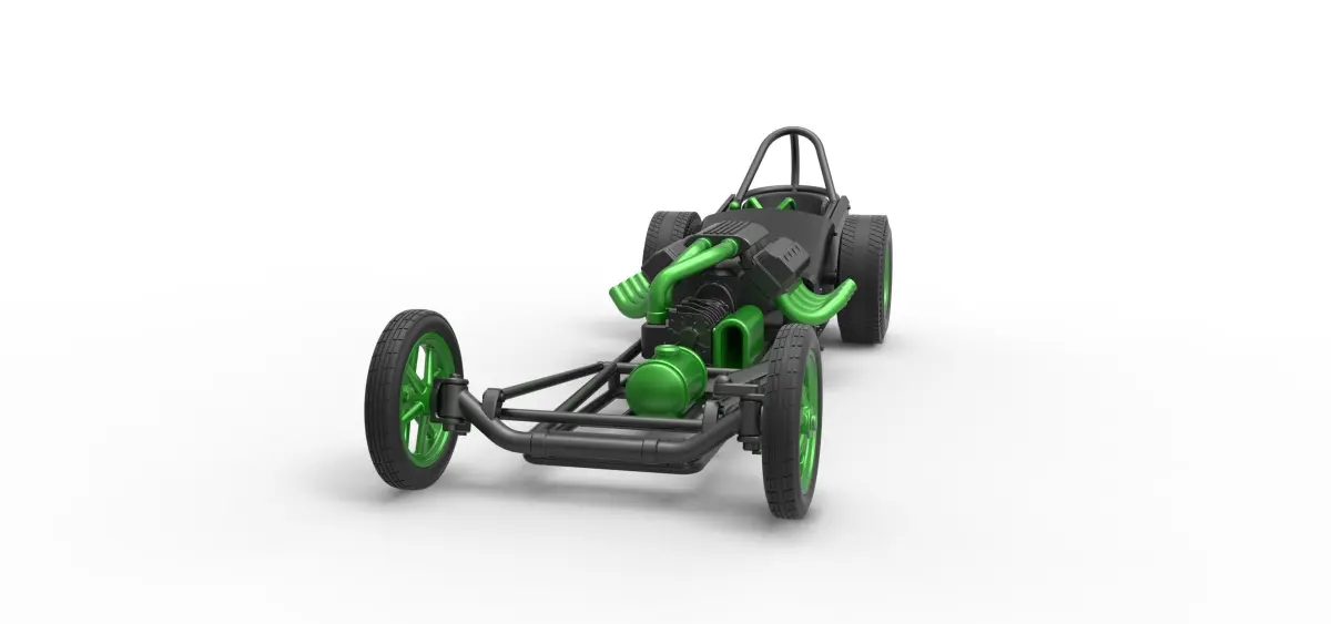 The model consists of parts: Air intake, Air tube 1,2, Body, Engine front part, Engine main part, Front rims, Front tires, Left exhaust pipes, Rear rims, Rear tires, Right exhaust pipes, Seat, Shell, Shifter, Steering wheel, Tank.